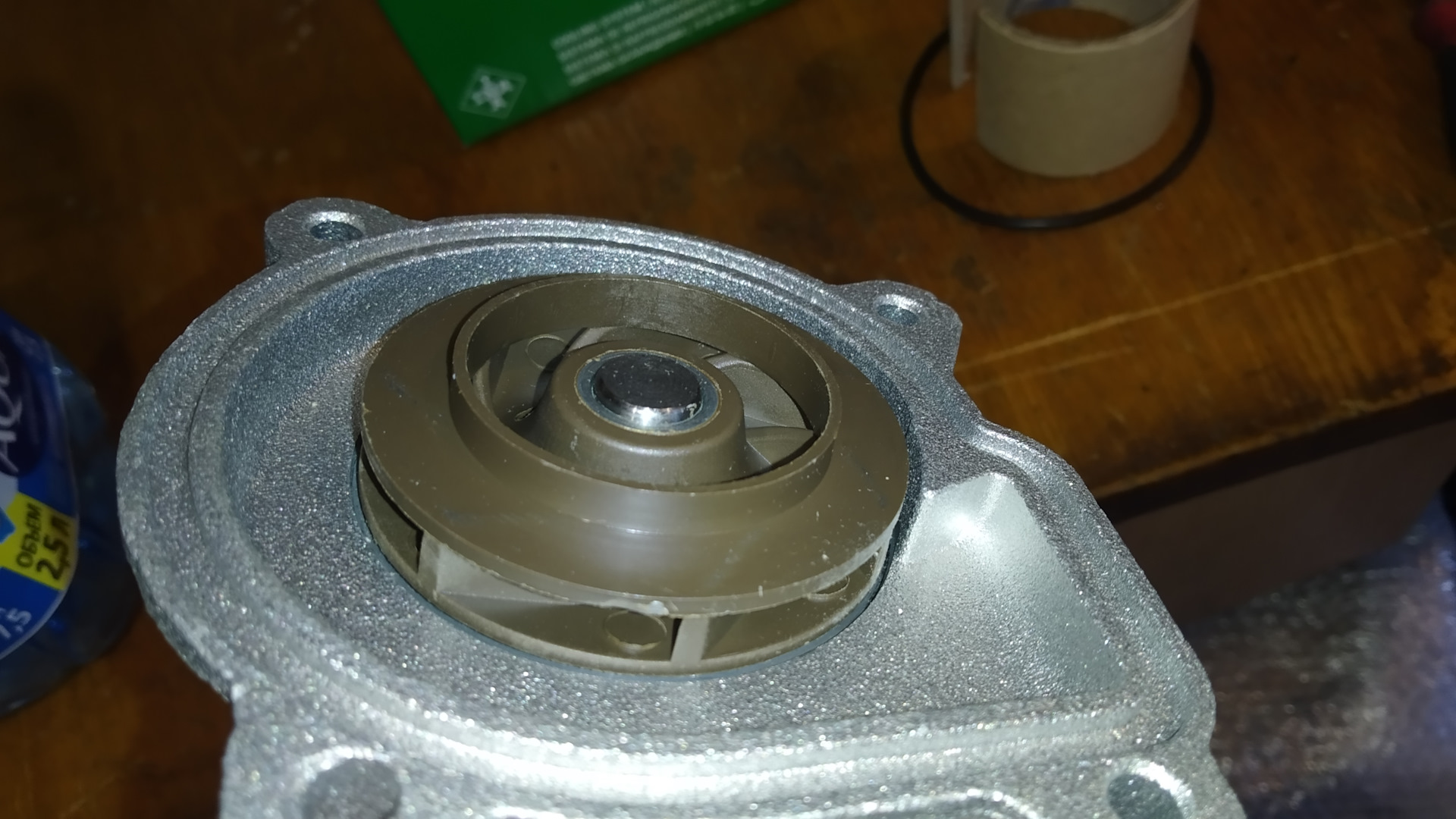 К сожалению, прокладка лежала отдельно. Не знаю, получится ли у меня установить помпу, не допустив выпадания прокладки из неглубокого желоба в корпусе помпы…