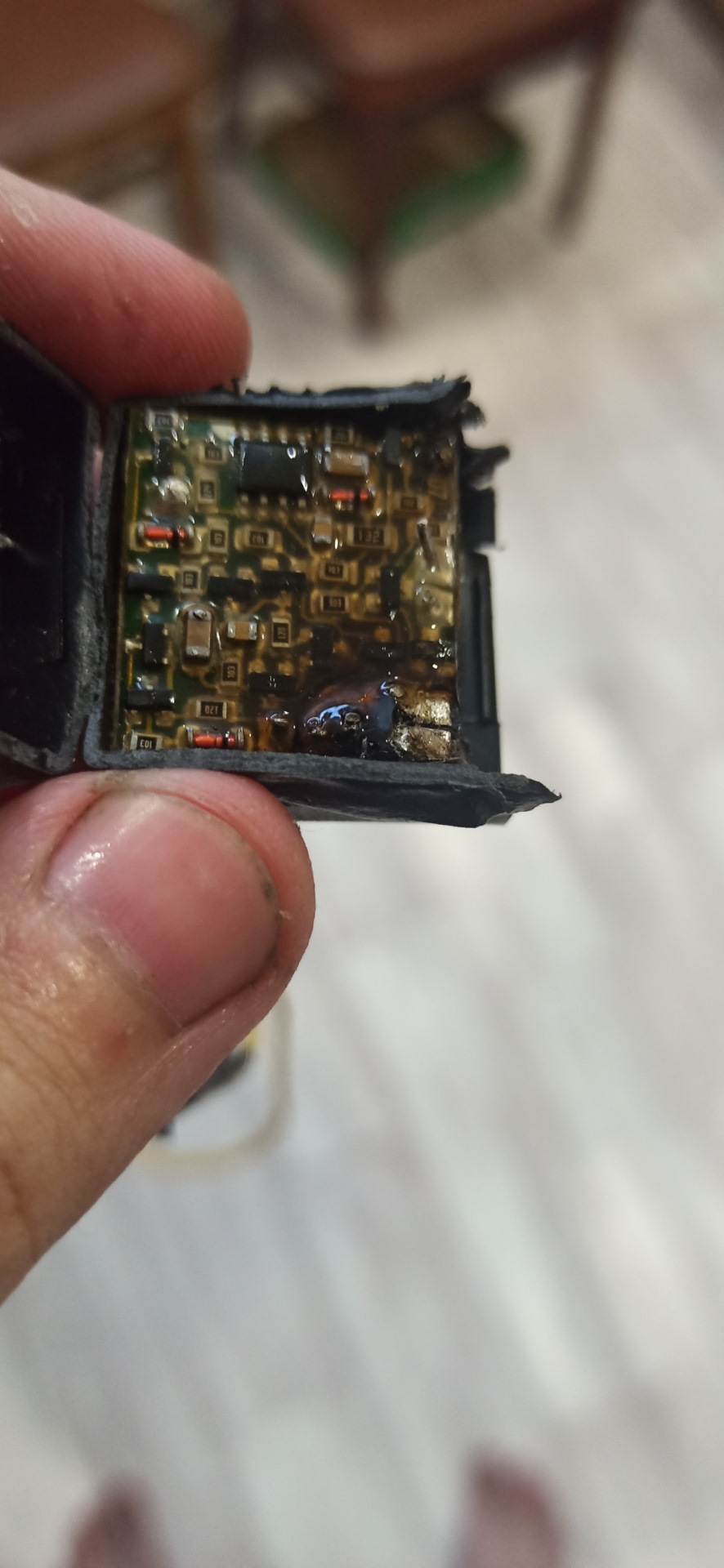 . С одной стороны, хорошо, что была колхозная переделка на проводах, не пострадал монтажный блок. Дальше я занес эту халабуду домой, подождал пока все остынет, решил вскрыть это реле.