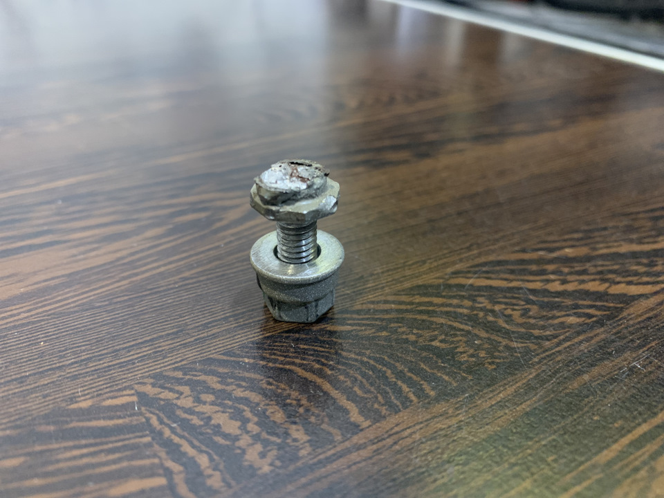 Я вспомнил что у меня отец в бывшем автоэлектрок, еду к нему, ( пришлось правда остаться на сутки из за конька но ладно, ) начав тестирование минут через 10 сказ что у меня плохая масса, ну ладно ок, на следующий день в гараж разбираю, снимаю акум, и по его совету откручиваю чищу все массовые провода, да вроде все ок.собираю обратно прикручиваю массу к кузову на телевизоре и… Вот оно, болт остался в руке, они приварили, ой не насрали типо привари гаечку на 6 к кузову котора между кузовом и гайко уже образовала ржу( фото прилагаю) . Зачищаю делаю отверстие на 8.5 и болт с гайкой на 8 и аот уже 2 дня тачка огонь. И кстати заметил что на моем пробеге 27т уже потегла прокладка клапаной крышки, все бы ни чего но колодца со свечами тоже в масле . Ужас.