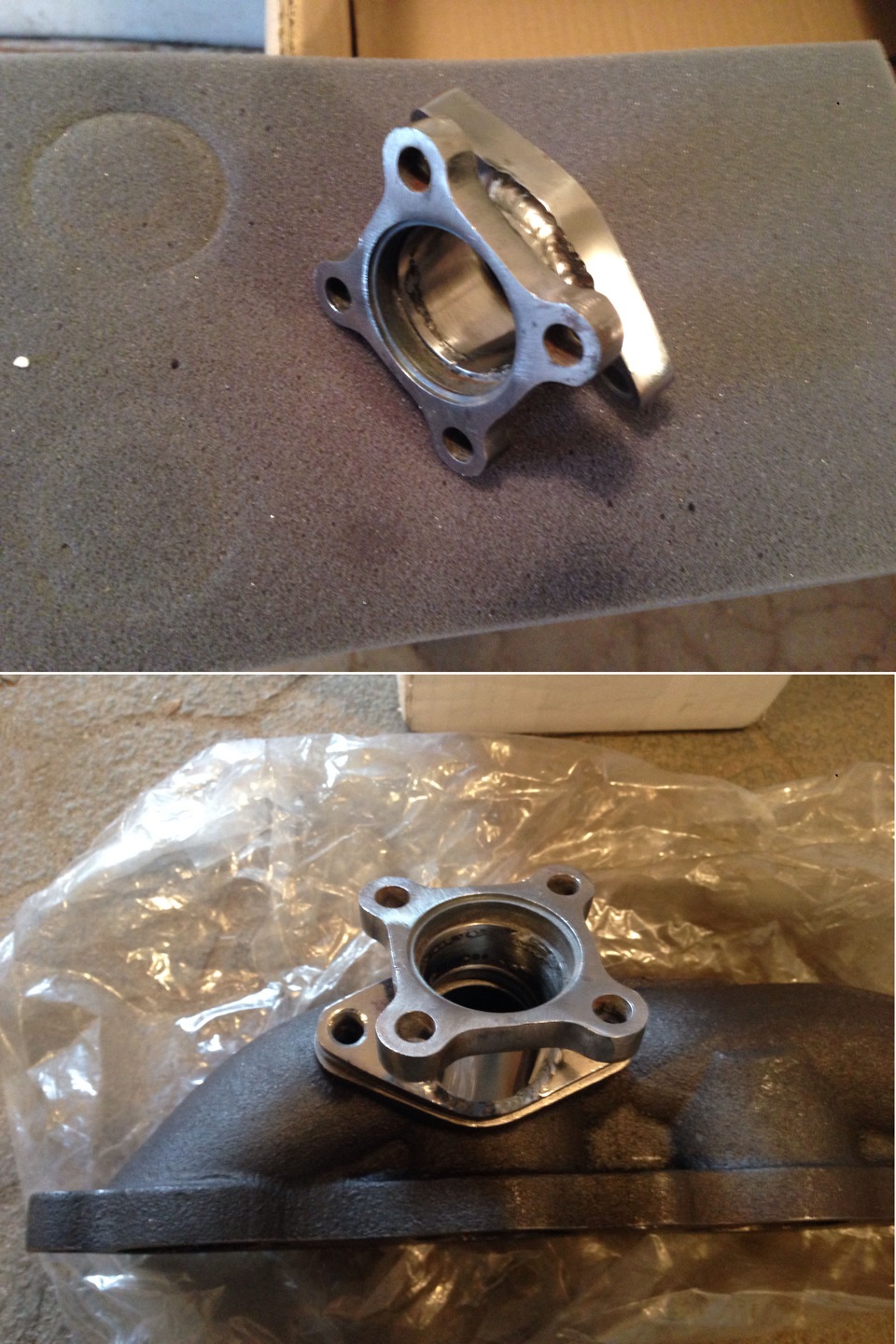 Переходник для подключения Вестгейта к чугунке… по стечению обстоятельств производитель попутал и ошибочно выслал изделие с 4 болтовыми соединениями под вестгейт. Пришлось кроить и варить ((