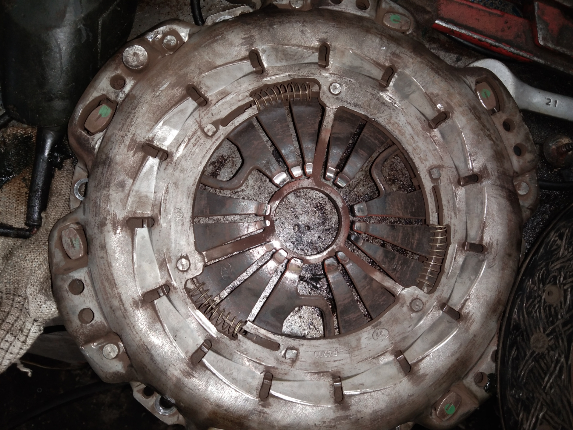 Ездил на машине, не убивал тяжестями, практически она у меня для поездок за пивом.В один момент резко перестали нормально включаться скоростя, приходилось пинками вгонять.Усилие на педаль не изменилось, шумов от коробки нет и не было, на включенной передаче и выжатом сцеплении-машину не ведёт.Регулировка тросов ничего не дало.Прокачка сцепления то же.В Ютубе мало инфы о дефектовке.Короче говоря, заскочил в сервис на яму.Снял коробку, выжимной в отличном состоянии, сам колокол не масле, но была характерная пыль от выработанного диска.Снял корзину и диск, потом маховик., , спецы" ничего мне умного не сказали.Собрал я в кучу всё и рванул в Люберцы.Там парни занимаются разбором, новыми запчастями и ремонтом.Выяснилось следующее, корзина взводится, моя корзина нормальная, не синяя, но отстрелила до упора, так как диск отработал ресурс, он был в два раза тоньше нового .Пришлось купить диск и корзину новые, с хозяином пришлось поторговаться, чел оказался нормальным, уступил за 15.000р.Старую корзину я сам хочу взвести и диск переклепаю.В общем стал собирать, сперва внимательно осмотрел сальник коленвала, он отличный на вид.Потом подшипник первичного вала на маховике.Он оказался в хорошем состоянии, я просто очистил его и смазал своим любимым N 158M)))).Феридо маховика не синий, очень достойное состояние, нет люфтов более рекомендованных Luk.Когда снимал траверсу(перекладина под коробкой)то отвернул башку четырём гайкам.но они закреплены на планке, а планка держится двумя гайками, они открутились.Я выбил огрызки и вылечил беду новыми болтами, которые я прихватил сваркой.С великими матюками, вспомнив немцев, нижегородских конструкторов воткнул КПП, с товарищем, на место, где то около 0,5 см не село, но вопрос решил подтягивая болтами.Забыл сказать, маховик когда ставил, всё болты сажал на клей.Все болты затягивал только руками, не рекомендую пневматику и прочее.Посчитаете меня глупым, потом у вас будет бурный секс с обломышами.У меня был секс с огрызком на маховике.))))Прокачивал сцепление так, шлангочку воткнул в пипку на правом суппорте, а другую в пипку на выжимном.Разов 10 качнул нежно и печально.закрутил потом на сцеплении, выдернул шлангу и закрутил на суппорте.Короче, собрал, завёл машину.Сперва скоростя включались тоскливо, потом вдруг завибрировало всё и резко пропало.Я выехал и прокатнулся на площади.Вперёд, назад по мотался.Скоростя включаются щелбанами))).
