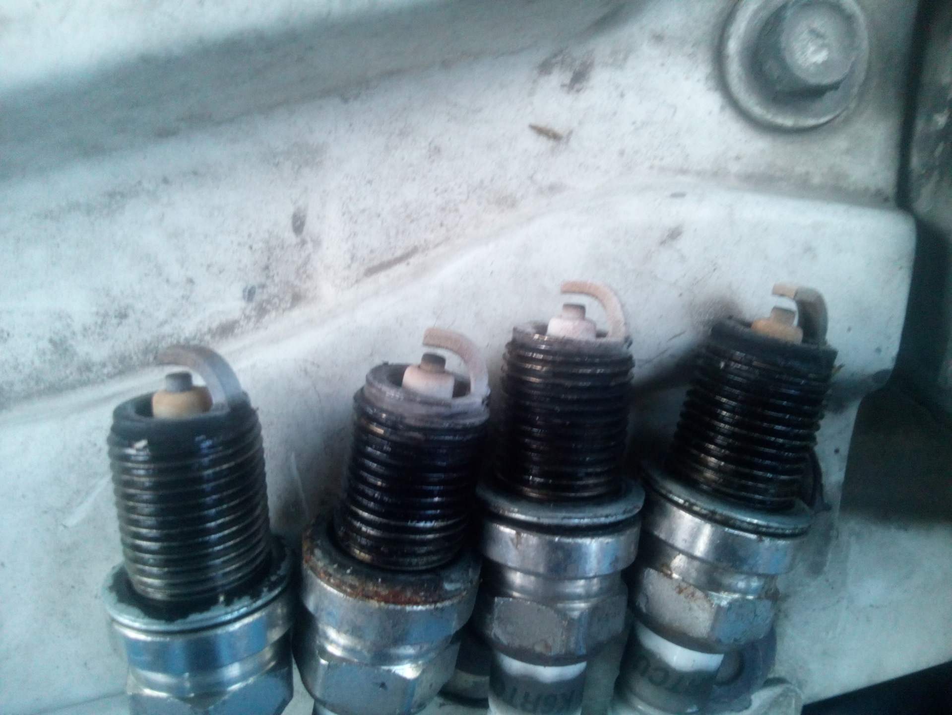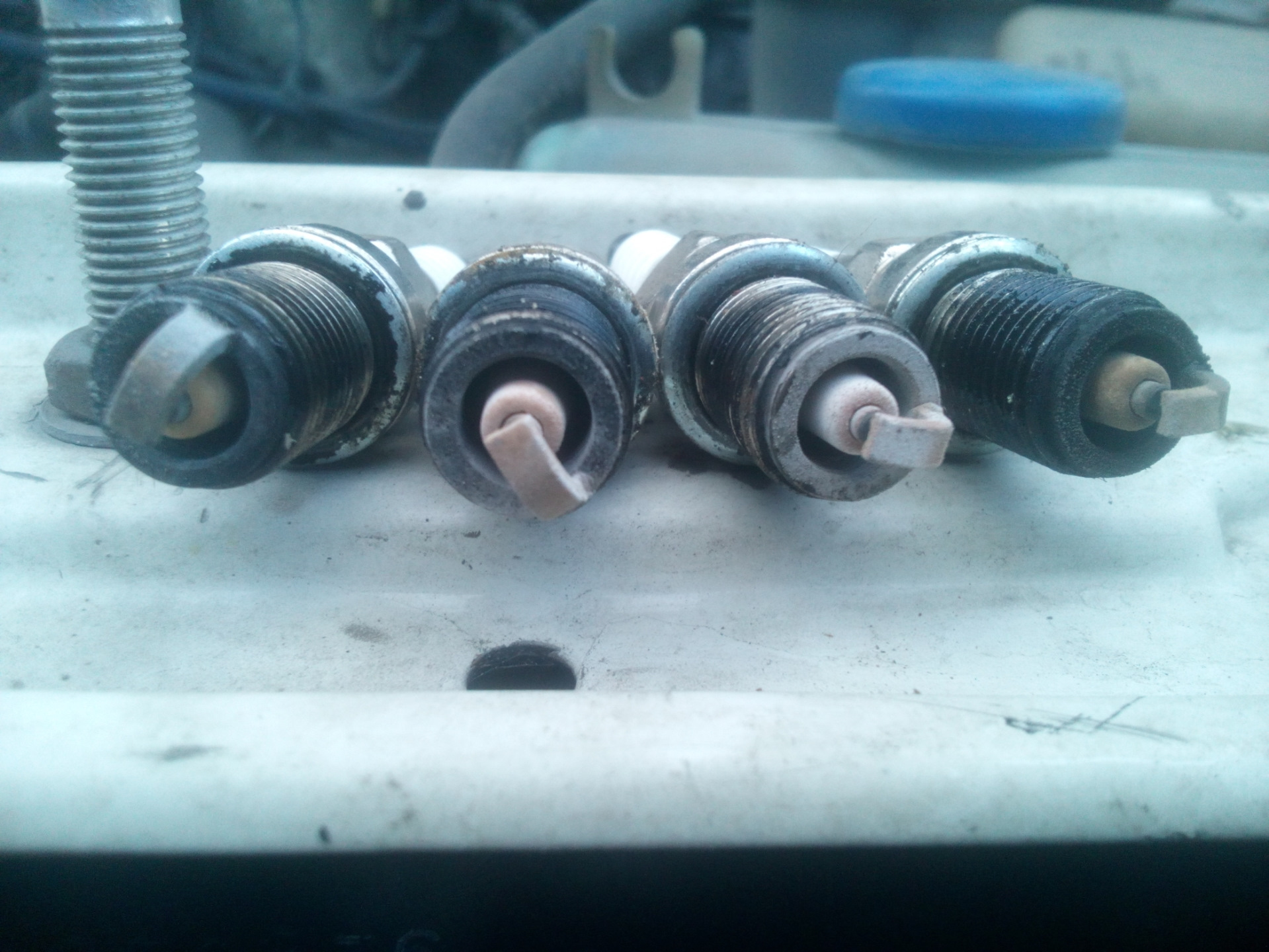 Выкрутил свечи чтоб посмотреть на то что там творится и был удивлён, все свечки нормального кирпичного цвета
