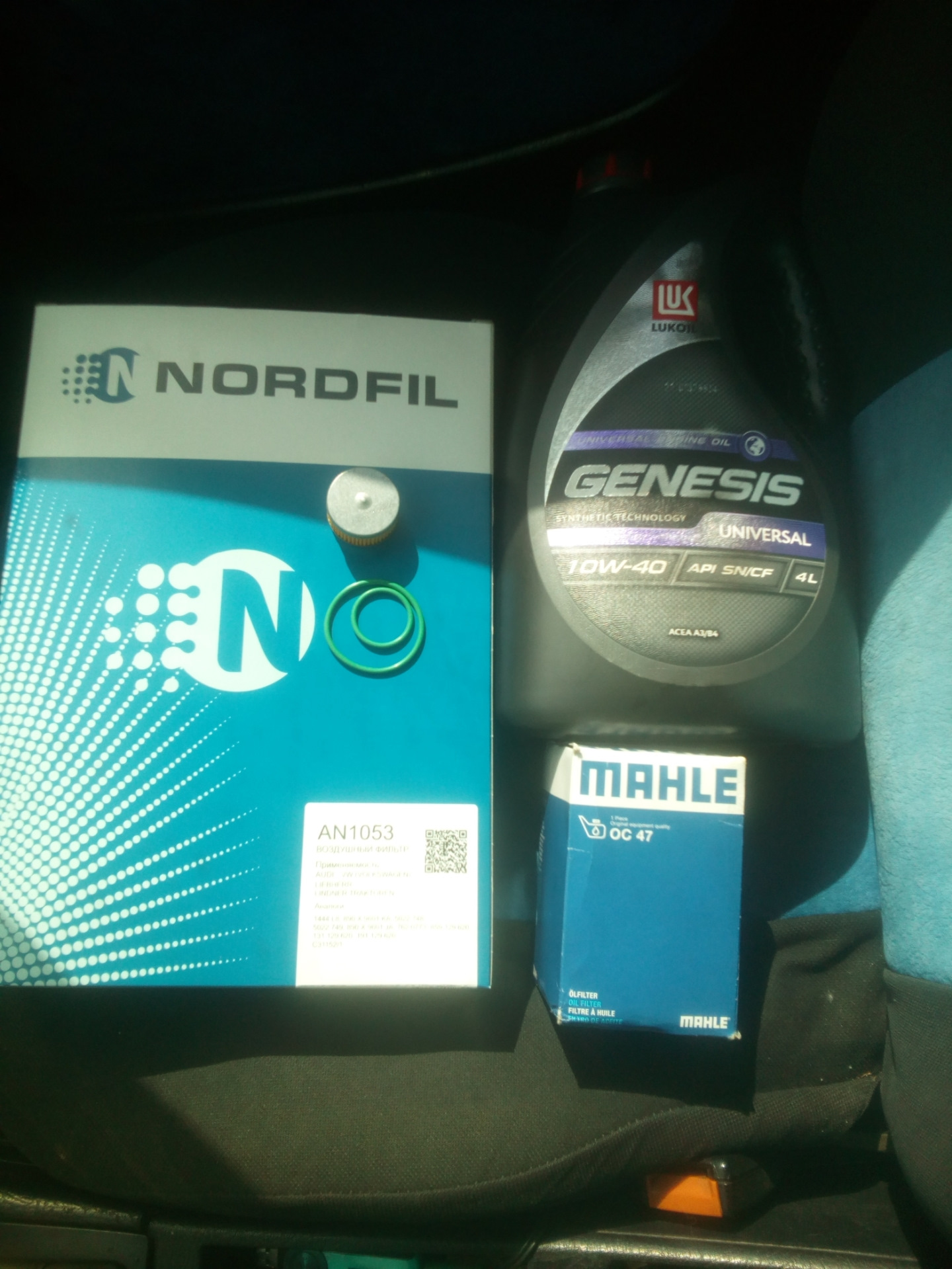 Решил в мотор пока не лезть и пойти простым путем, если дым начал валить после замены масла, то есть доля того что масло попалось поддельное, решил ещё раз заменить масло, по логике хуже не будет, только чище в моторе будет, на этот раз взял Lukoil Genesis 10w40 ну и не изменный mahle oc47, заодно взял газовый фильтр с резинками и на воздух Nordfil an1053