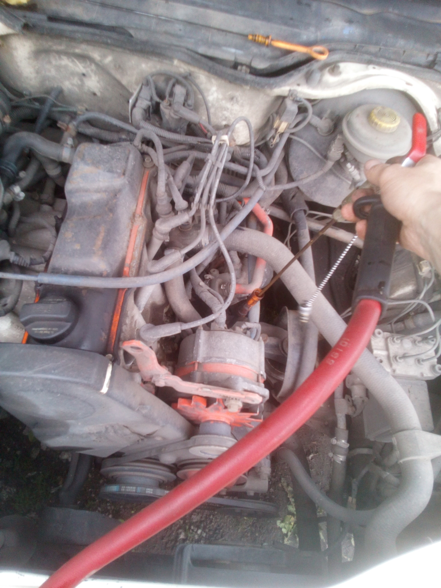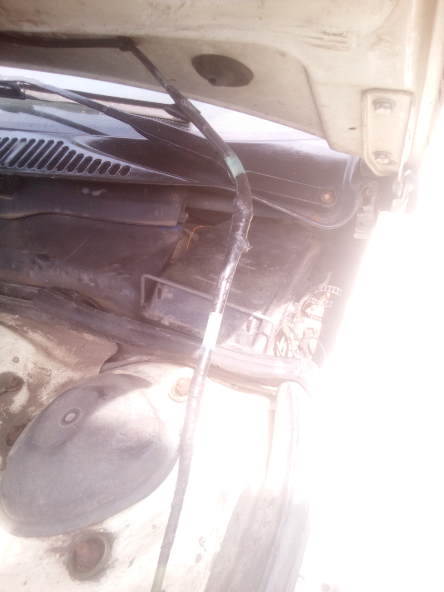 Попадать в отверстие моторного щита ещё тот кайф, трос капота мешает, но ничего все продел