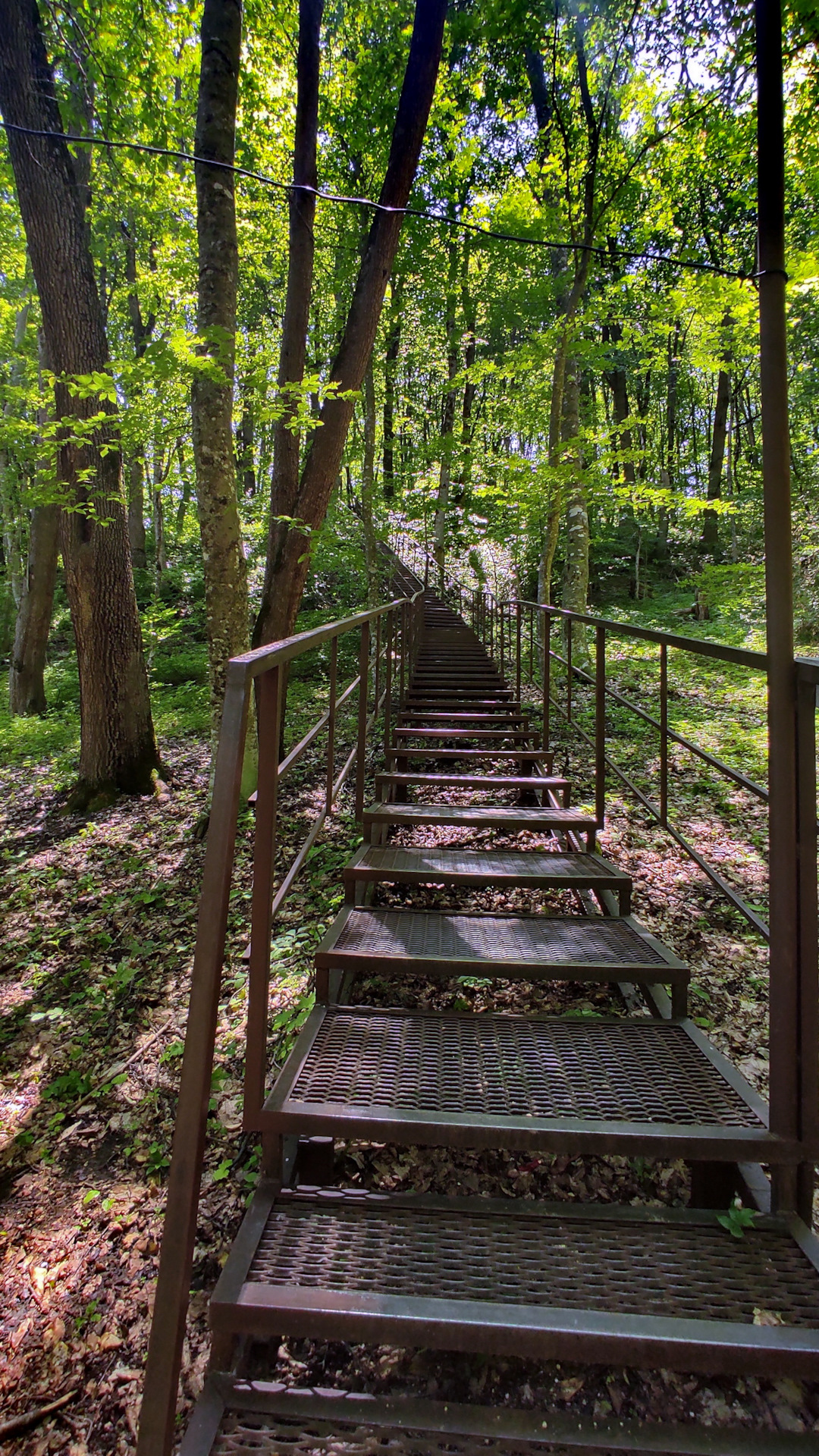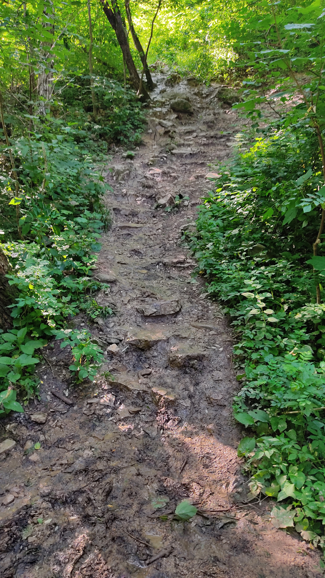 А вот за источником пошли ступеньки на гору. Воздух там!