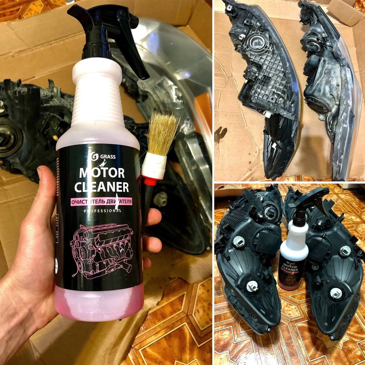 2. ЧИСТКА, МОЙКА. Перед тем, как приступить к разбору, необходимо очистить фары от грязи и пыли. GRASS MOTOR CLEANER справился с этой проблемой на ура.