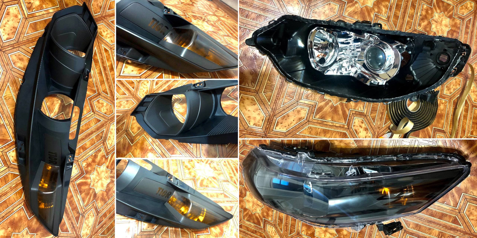 • Собираем отражатели, маски, желтки, устанавливаем в новое стекло (пройдитесь шурупом все места куда они закручиваются, из них сыпется остатки литьевой резьбы).