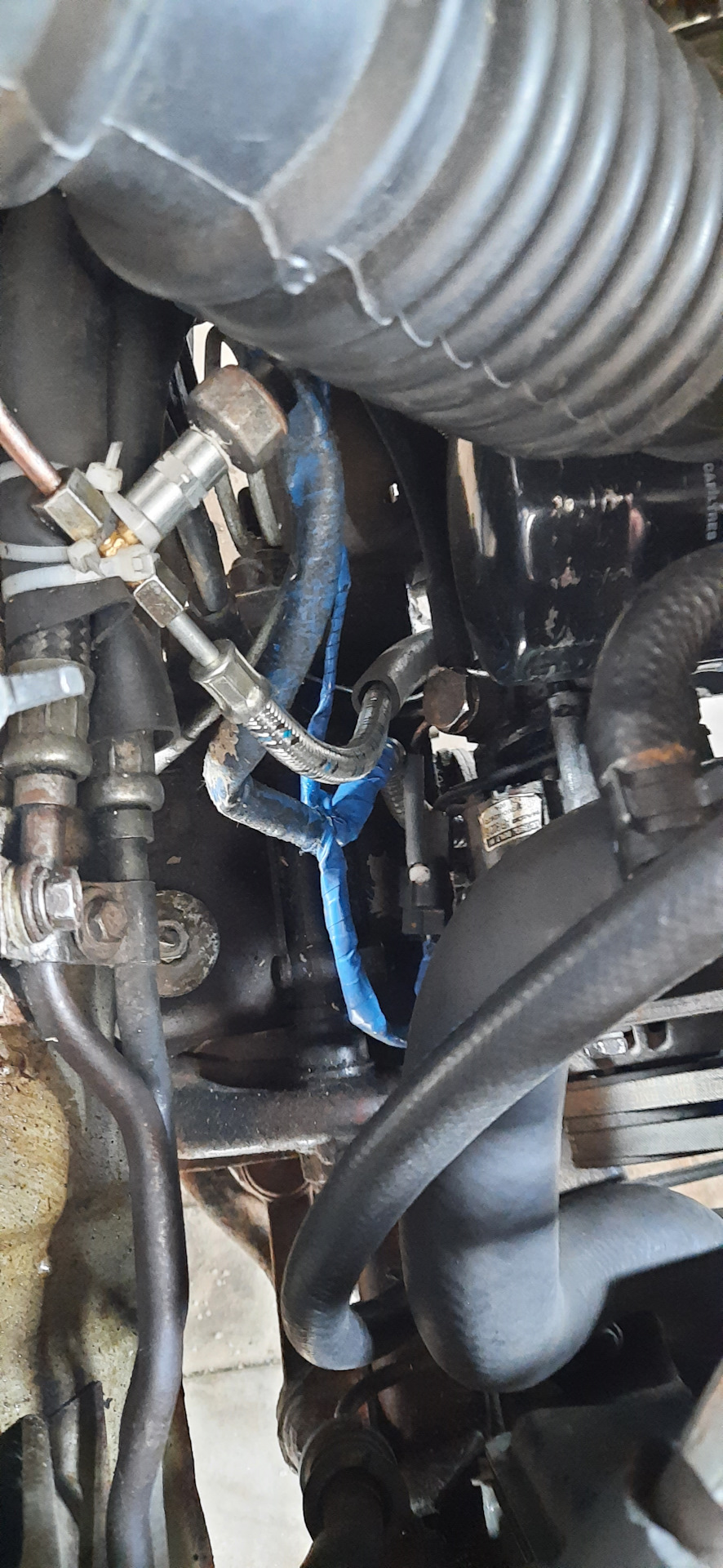 Гибкий подвод (см. фото 3), назначение которого — компенсировать механику (колебания) от работы ДВС, через 6000км разгерметизировался в местах обжима (перехода резина/металл)!