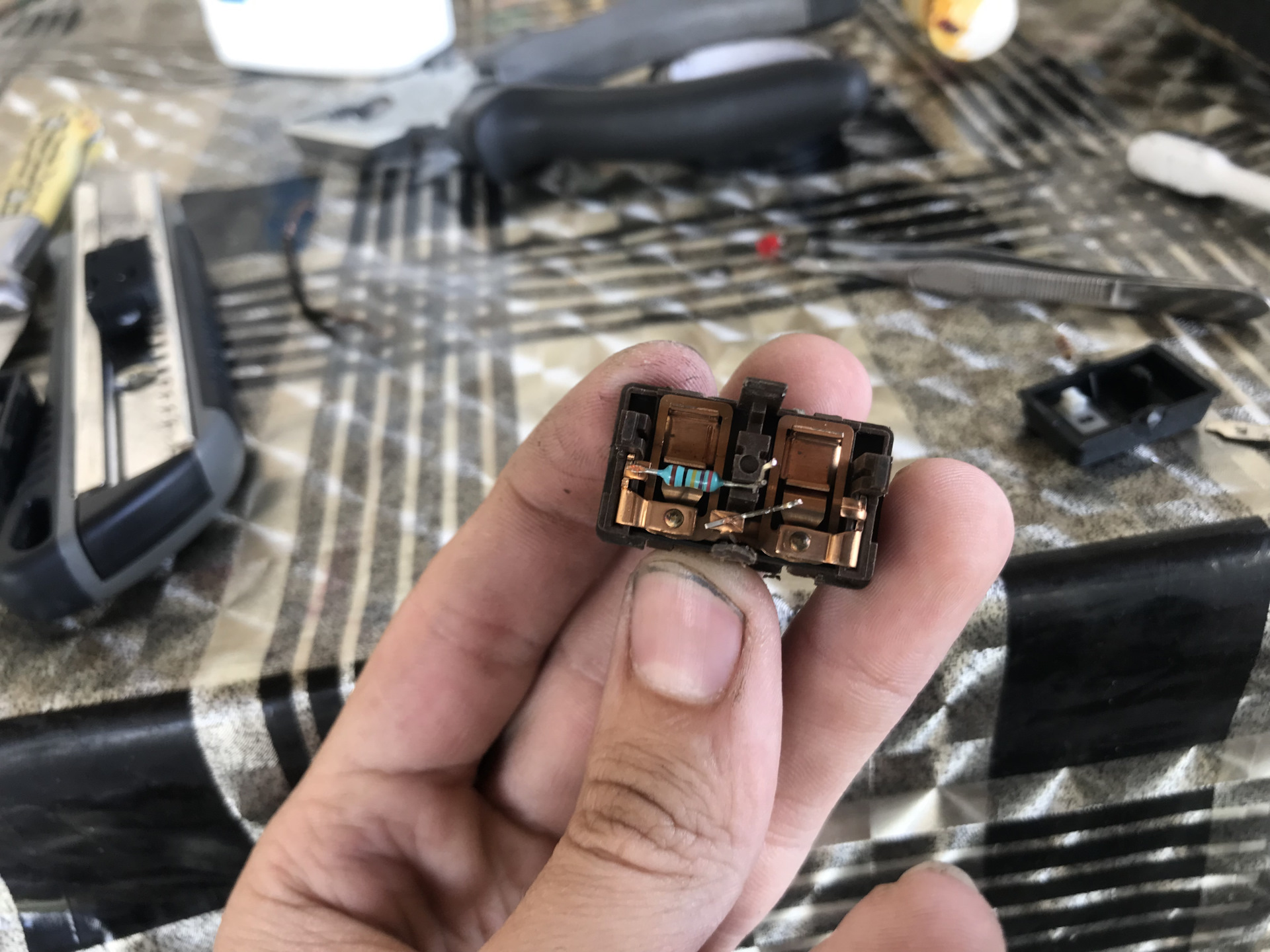 Сопротивление надо было оставить, там, вроде, или 260ом или 560ом (у меня в разных кнопках разные были). На этих китайских светодиодах 470ом стоит smdшка, этого мало для 14 вольт, нужно минимум 560, иначе светодиол вскоре перегорит, а лучше 680+, потому что я впаял 680 и, всё равно, для меня ярко.