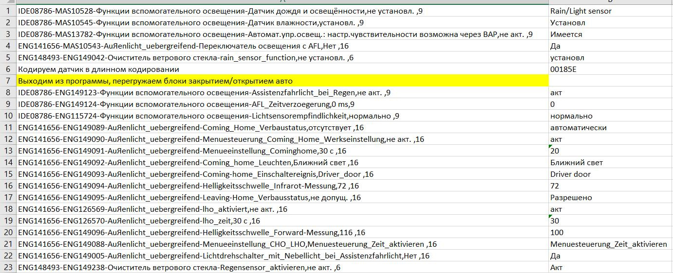 Кодировал по мануалу, там вроде бы все кодировки относились именно к датчику света. Надо экспериментировать, но такое ощущение, что никак оно не влияет на время включения, т.к. сегодня заехал на мойку самообслуживания под навес, фары включились…