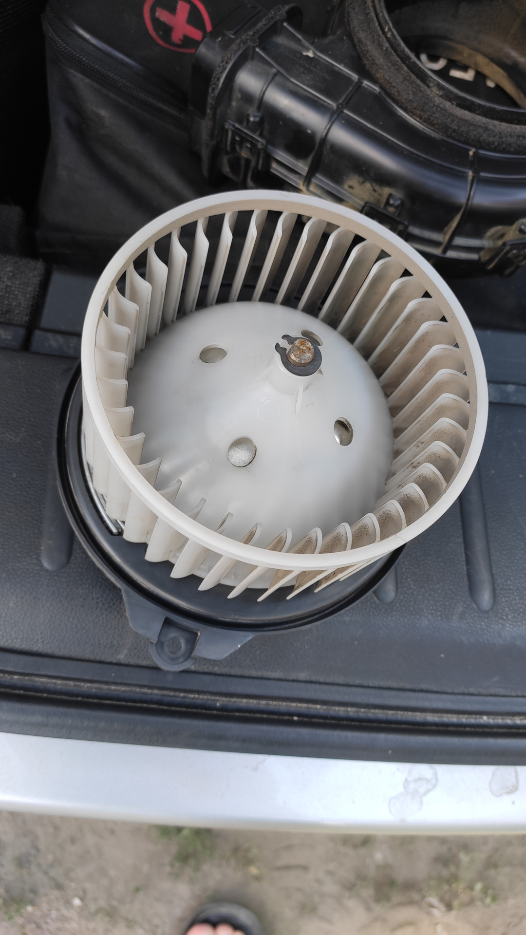 Залез поглядеть как там у меня батарея)все на месте, на вентиляторе особо грязи нет)