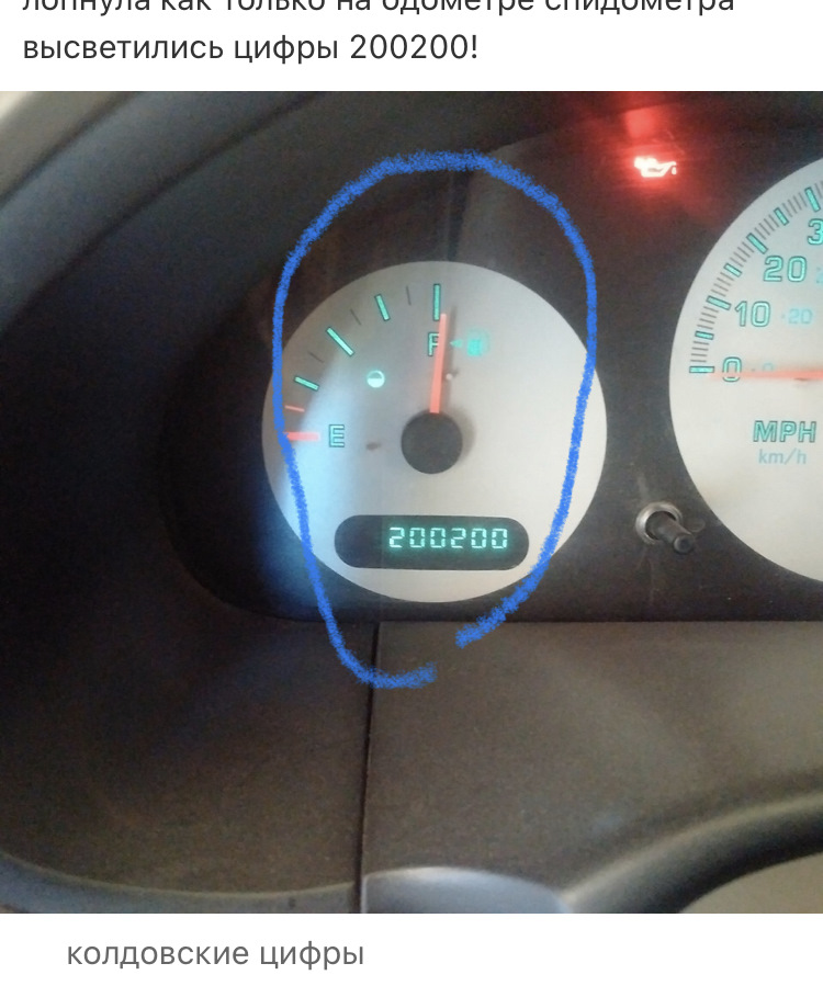 ну как тут не поверить в магию цифр — лопнула как только на одометре спидометра высветились цифры 200200!