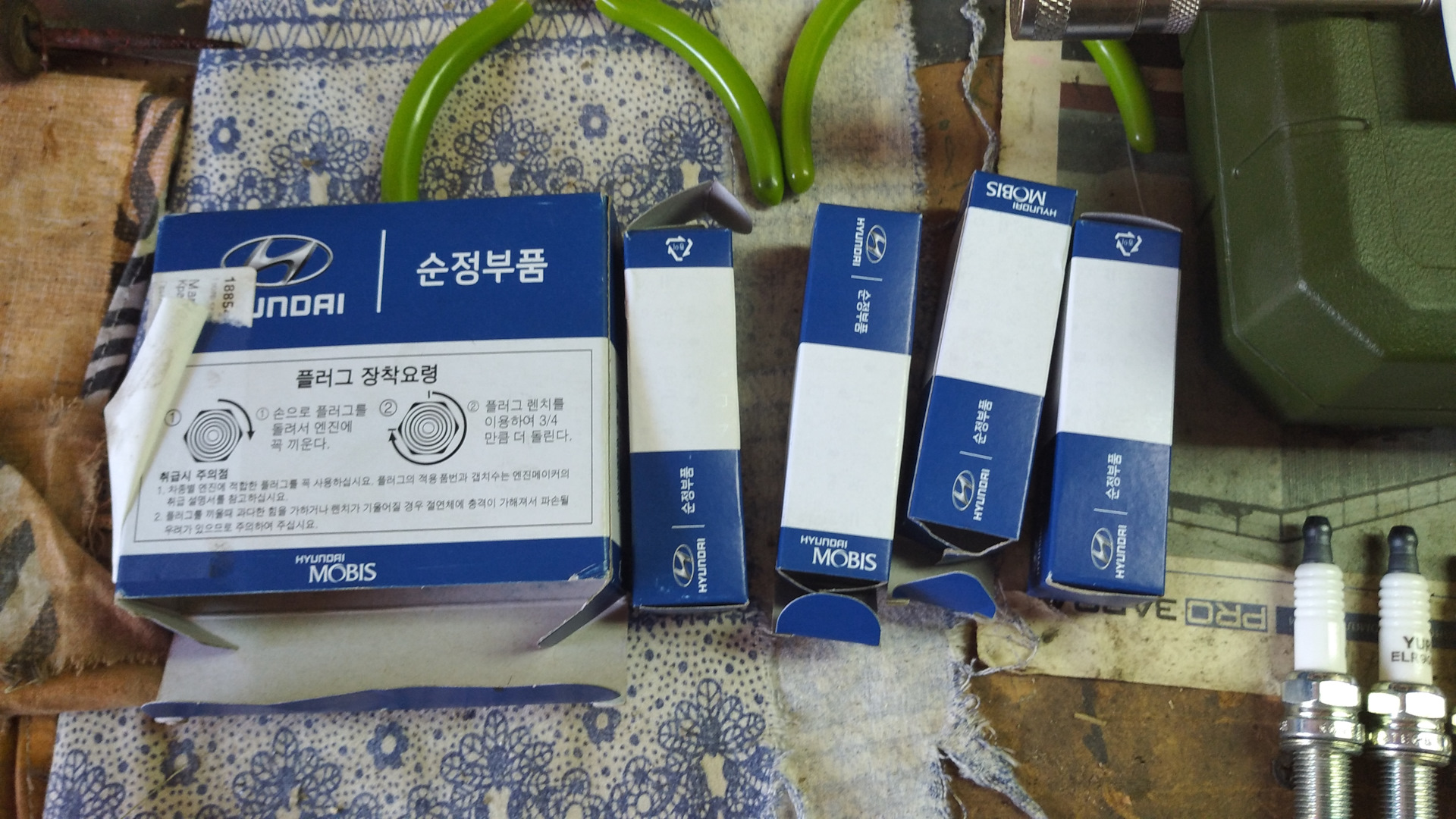На замену были куплены еще весной новые свечи зажигания Hyundai-KIA /1885410080/ и всё это время лежали в гараже, ждали своего часа.