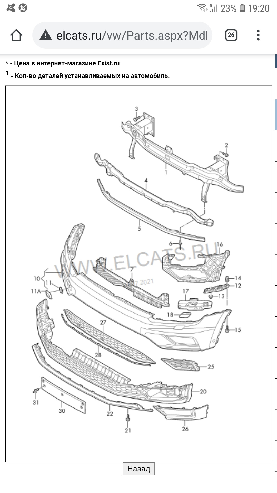 Облажались, так имейте честь признать. Вот схема бампера Тигуана. ОФИЦИАЛЬНАЯ. Где здесь сетка, о которой вы говорите?