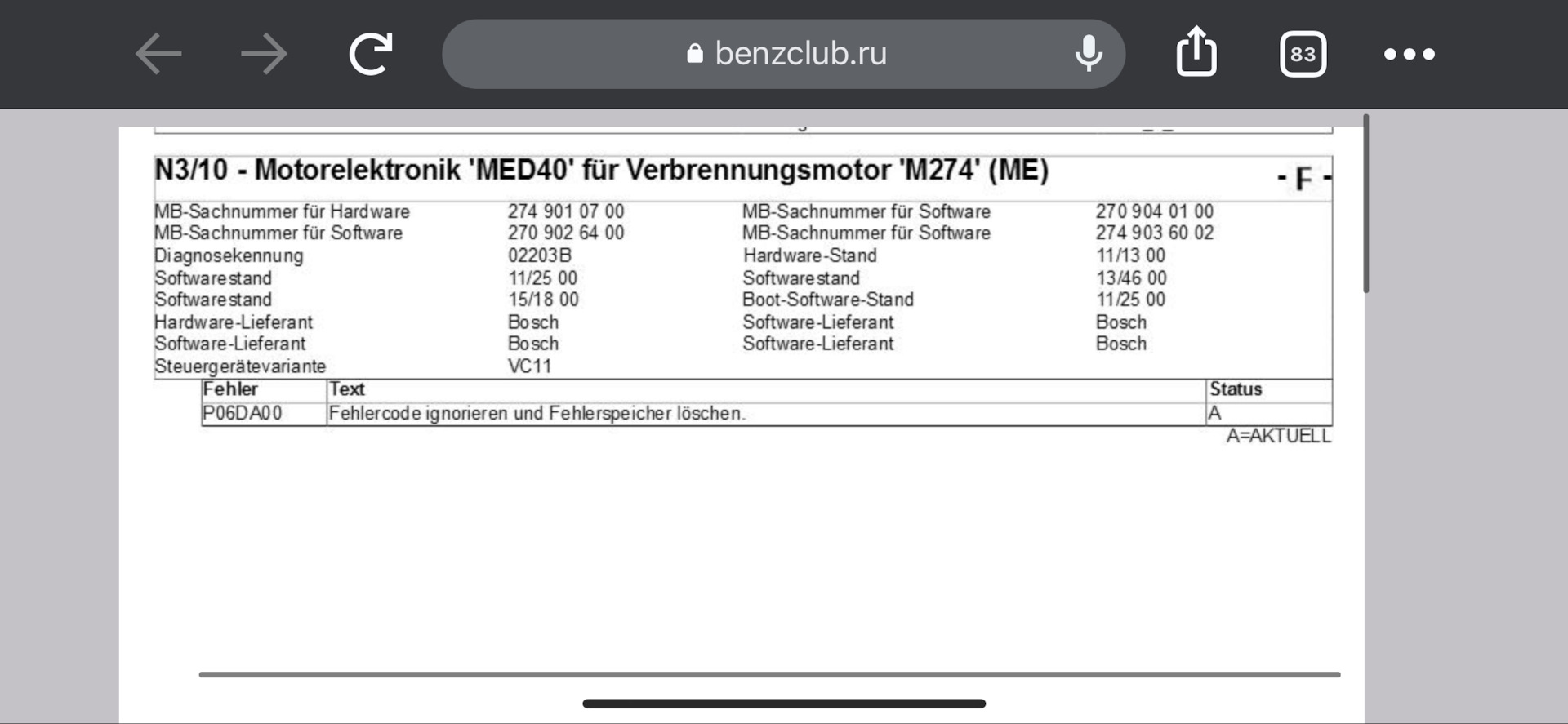 Ну да ладно. теперь смотрим что пишет сам Мерседес, ведь если так всё грустно и печально как описывают сайт разных сто жаждущих поменять эту проводку клапана, то и Мерседес также однозначно мне это пркдложит?