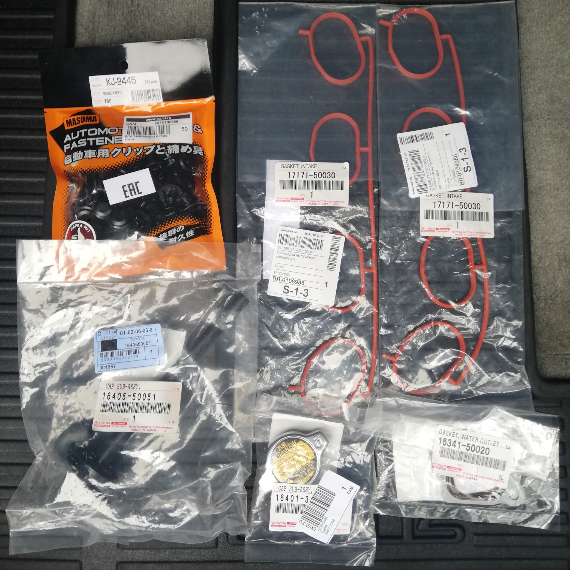 — две прокладки корпуса термостата Toyota 16341-50020, так как возможная причина протечки была именно в данных прокладках;
