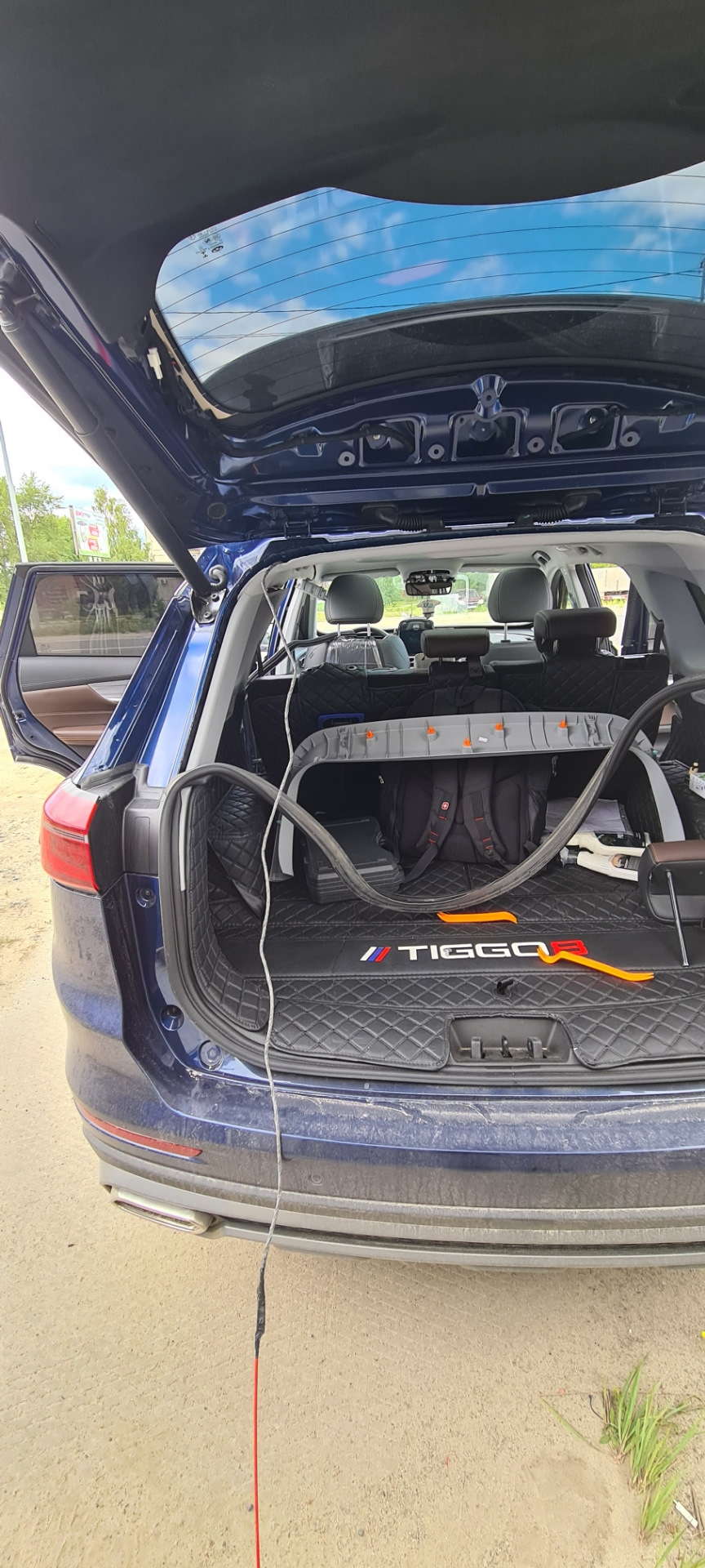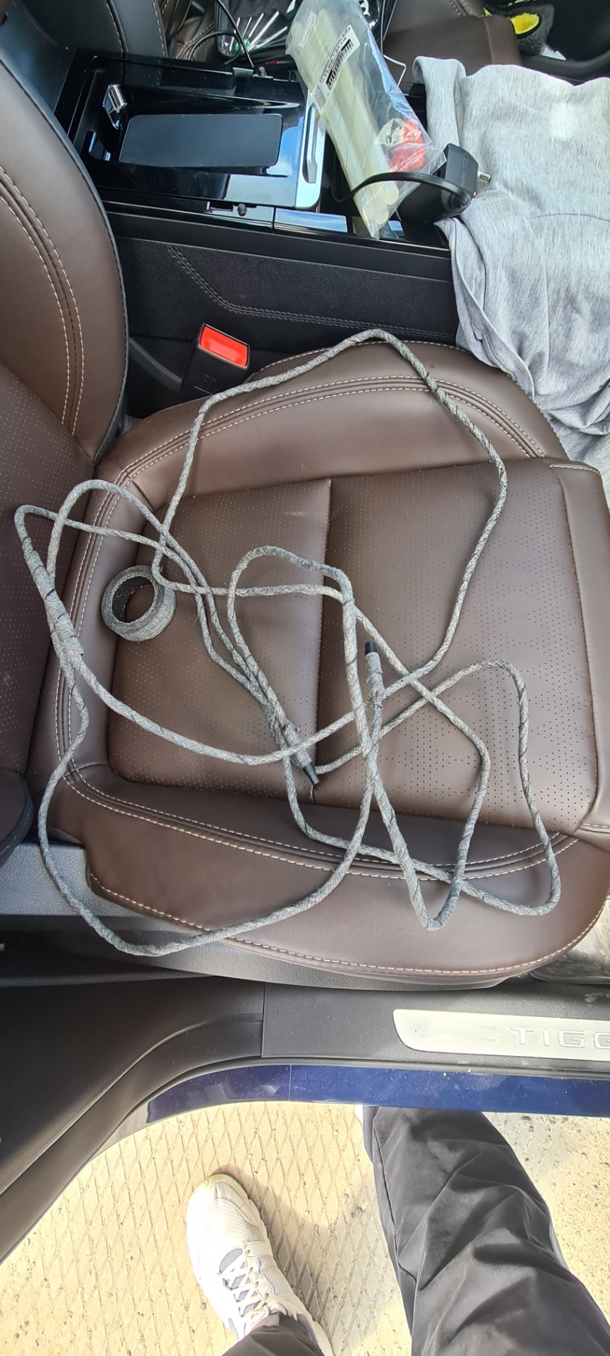 После чего решил бросить провод га заднюю камеру. В комплекте шли два удлинителя на две камеры. Эти два удлинителя соединялись друг с другом и с запасом хватило на дотянуть провод до задка тигра. И да все провода обмотал тряпочкой изолентой.