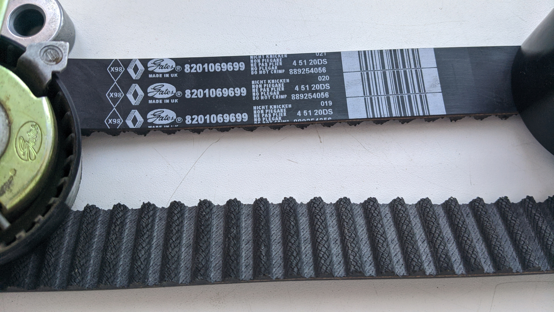 Интересно Ваше мнение по поводу комплекта ГРМ, у меня нет сомнений в подлинности. Единственное не понятно почему цвет металл на обводном ролике у кого-то жёлтый или белый бывает.