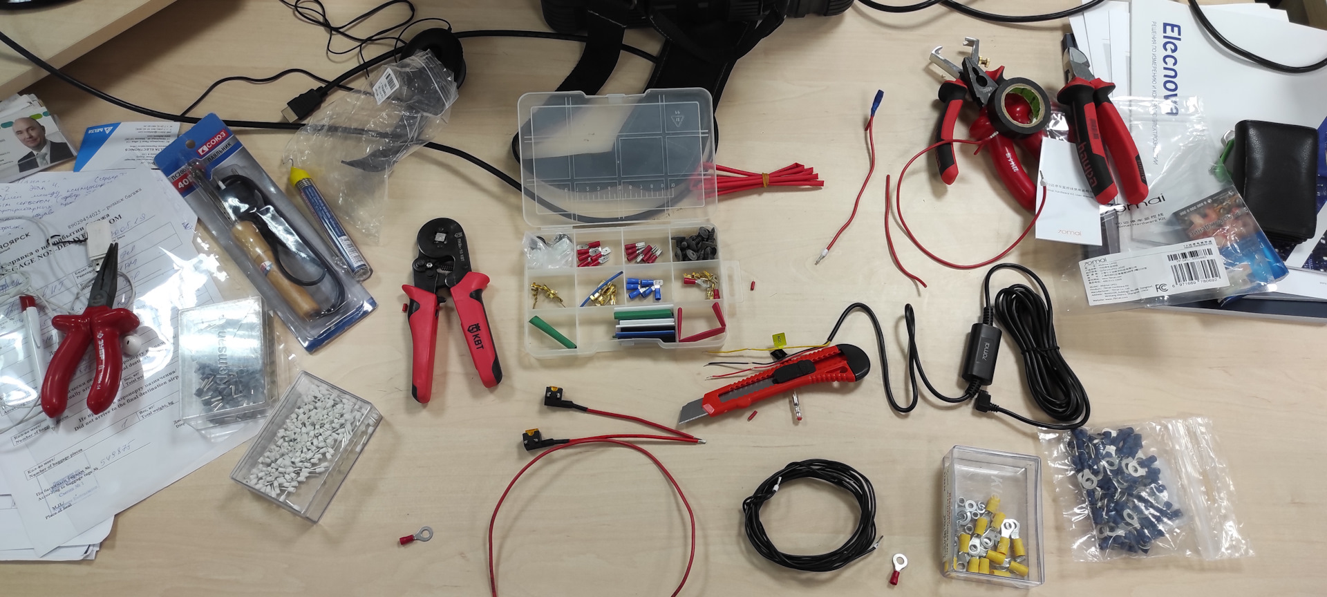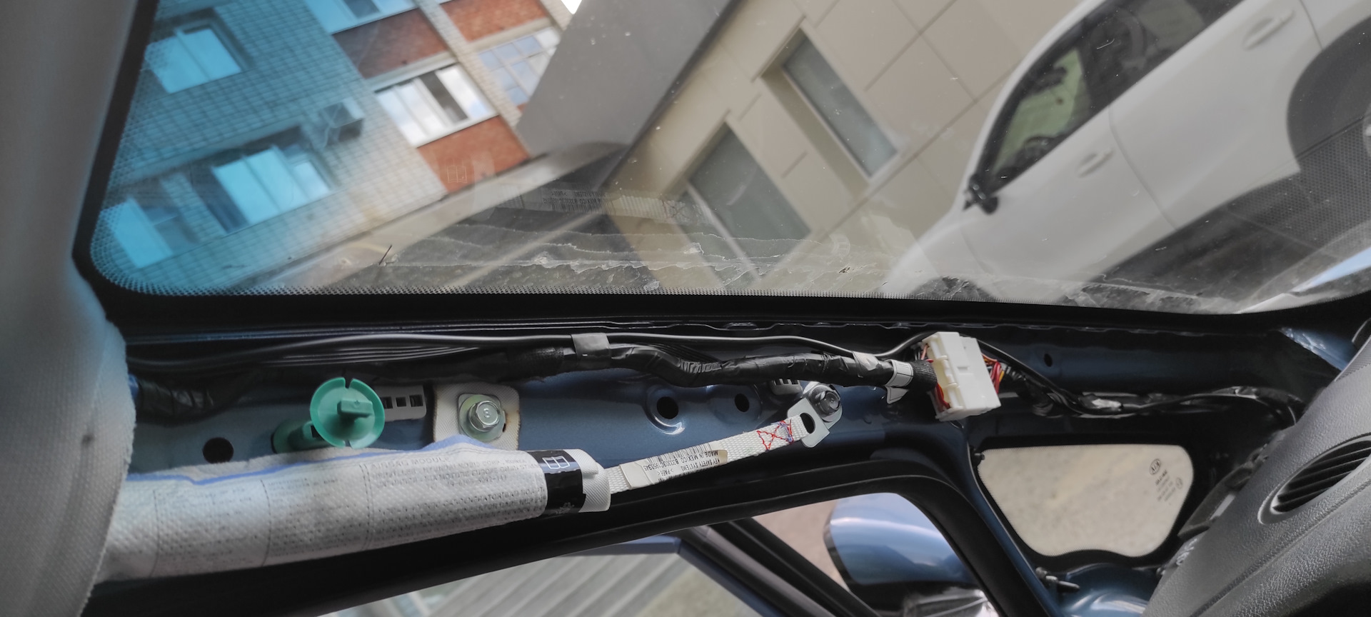 Провода от задней камеры пропускал через салонный пластик и далее за уплотнителем дверей в сторону лобового, провод от основного регистратора пропускал через потолок и спустил через левую стойку в салонный монтажный блок, там же и закрепил парковочный блок.