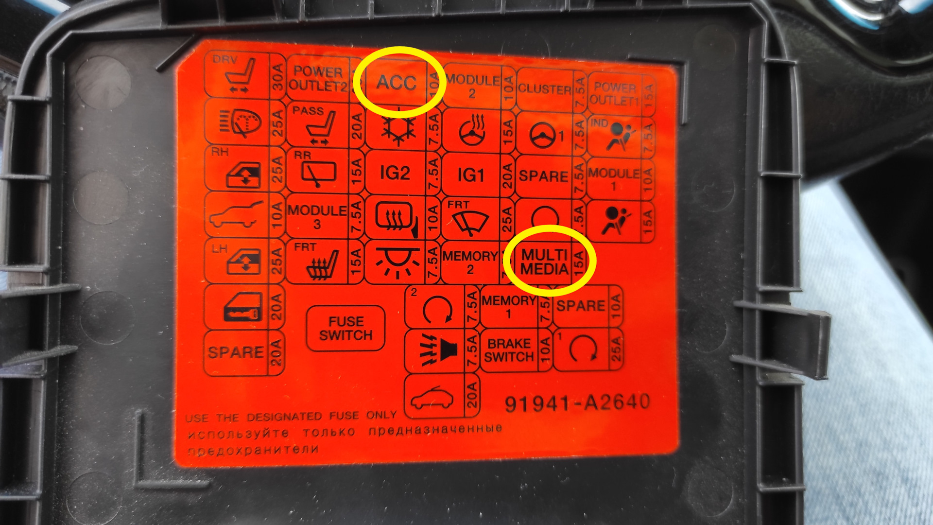 VCC+ "постоянный плюс" подключил в место предохранителя мультимедии и салонных часов