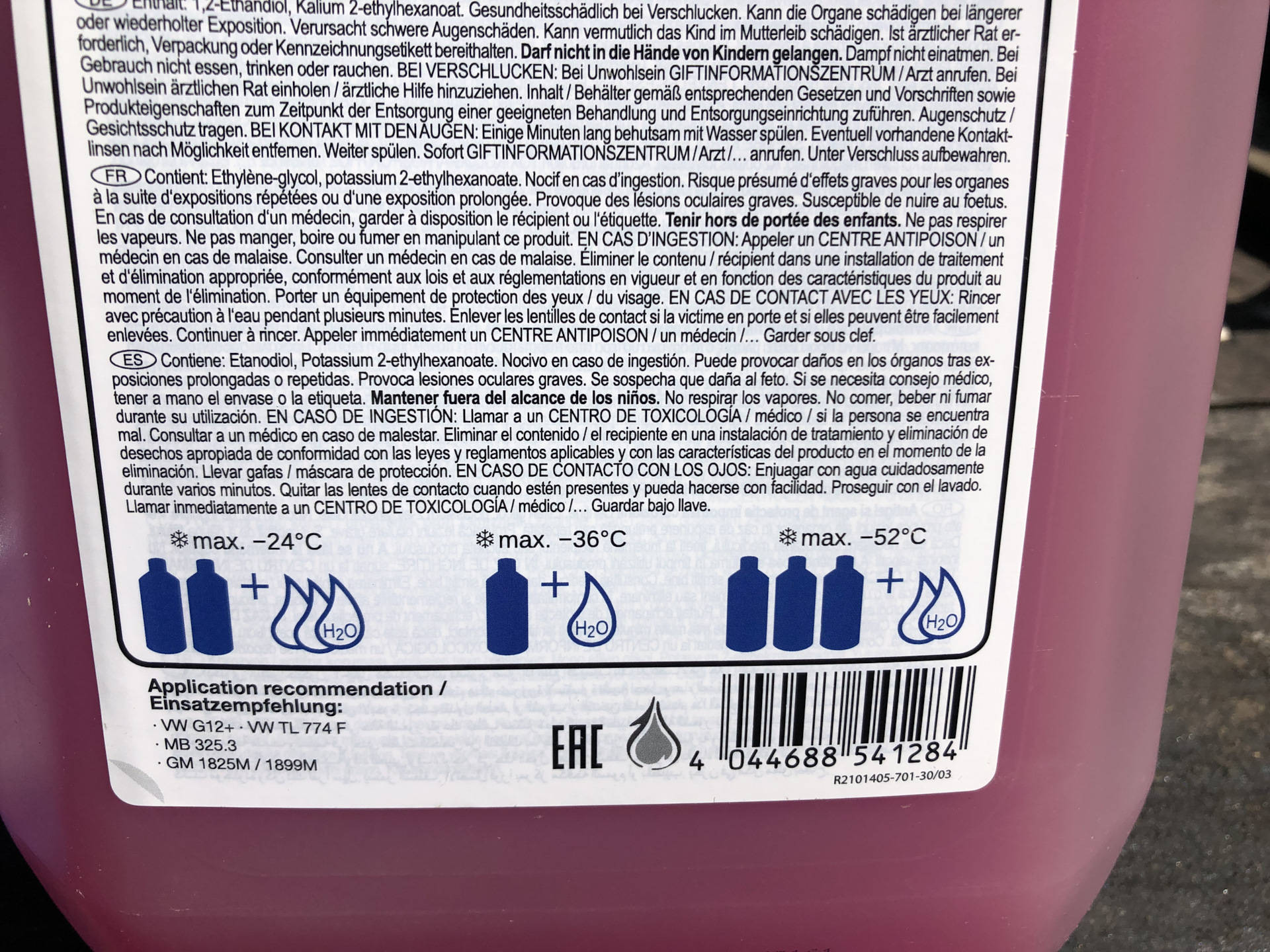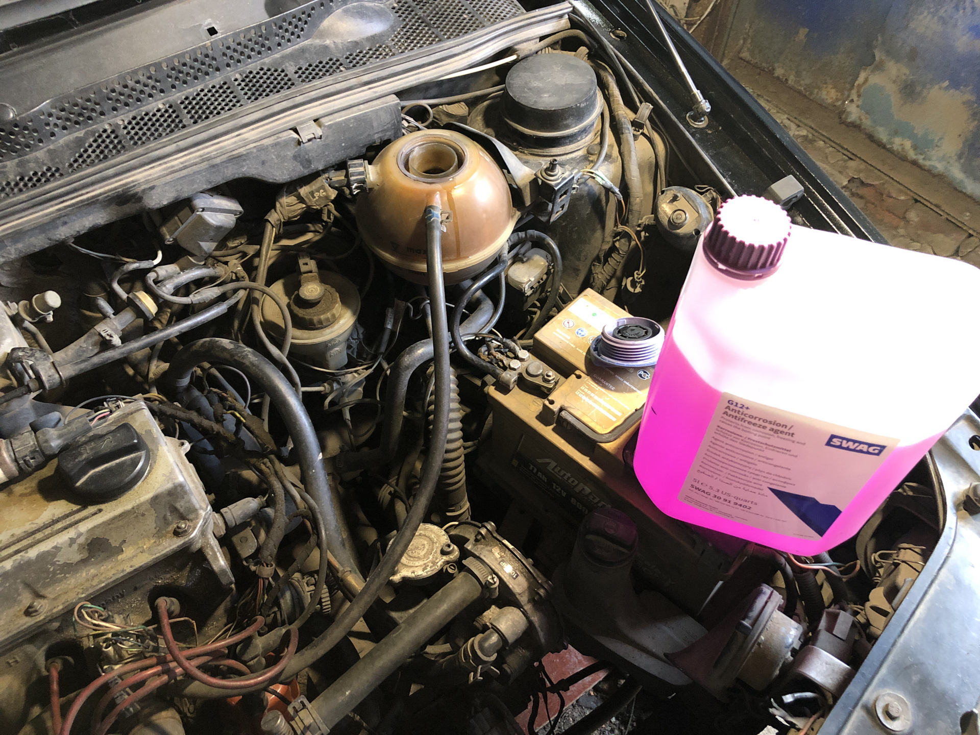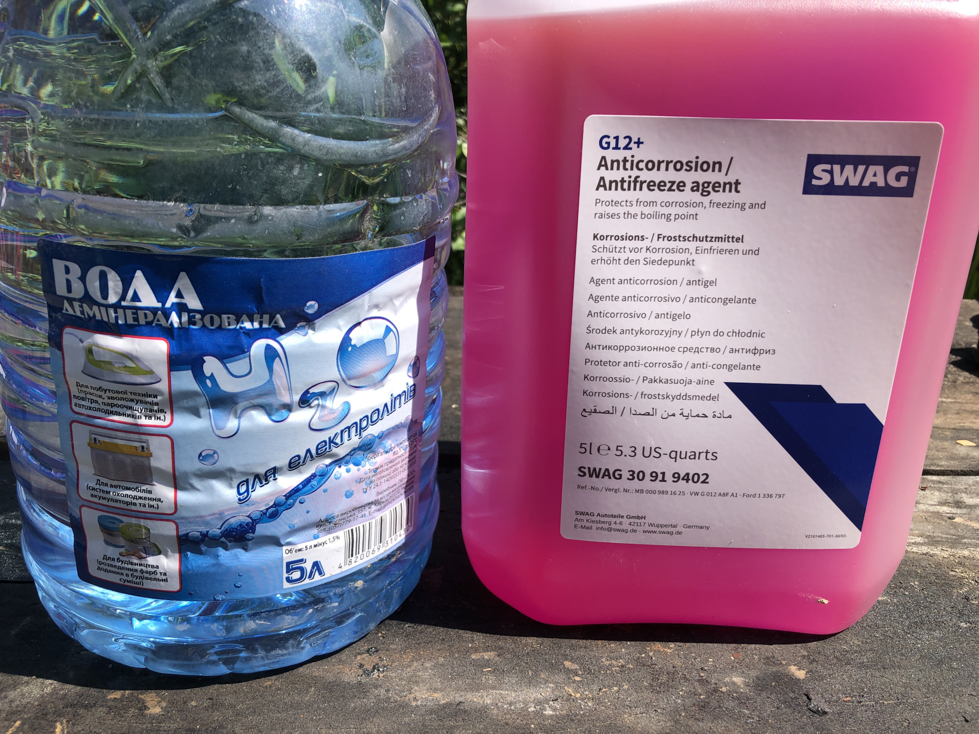 На смену красного концентрата антифриза HEPU я взял лиловый концентрат SWAG 30919402 и конечно дистиллированную воду.