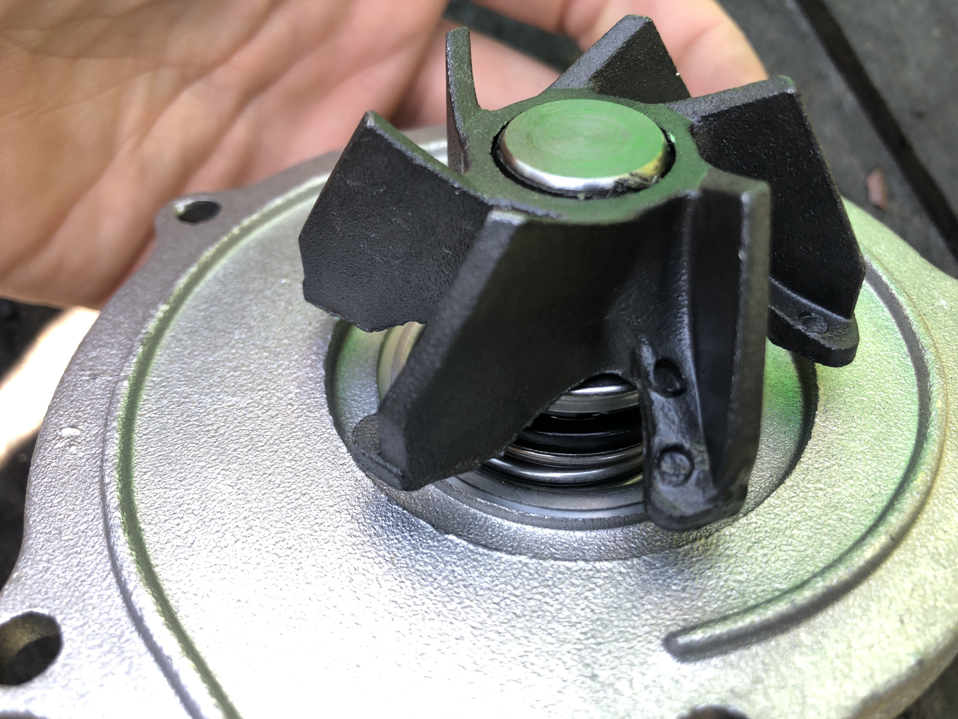Собираем помпу. Я бы рекомендовал нанести очень тонкий стой герметика на металлическую прокладку: так как она особо не вжимается и плоскость корпуса могло и повести.