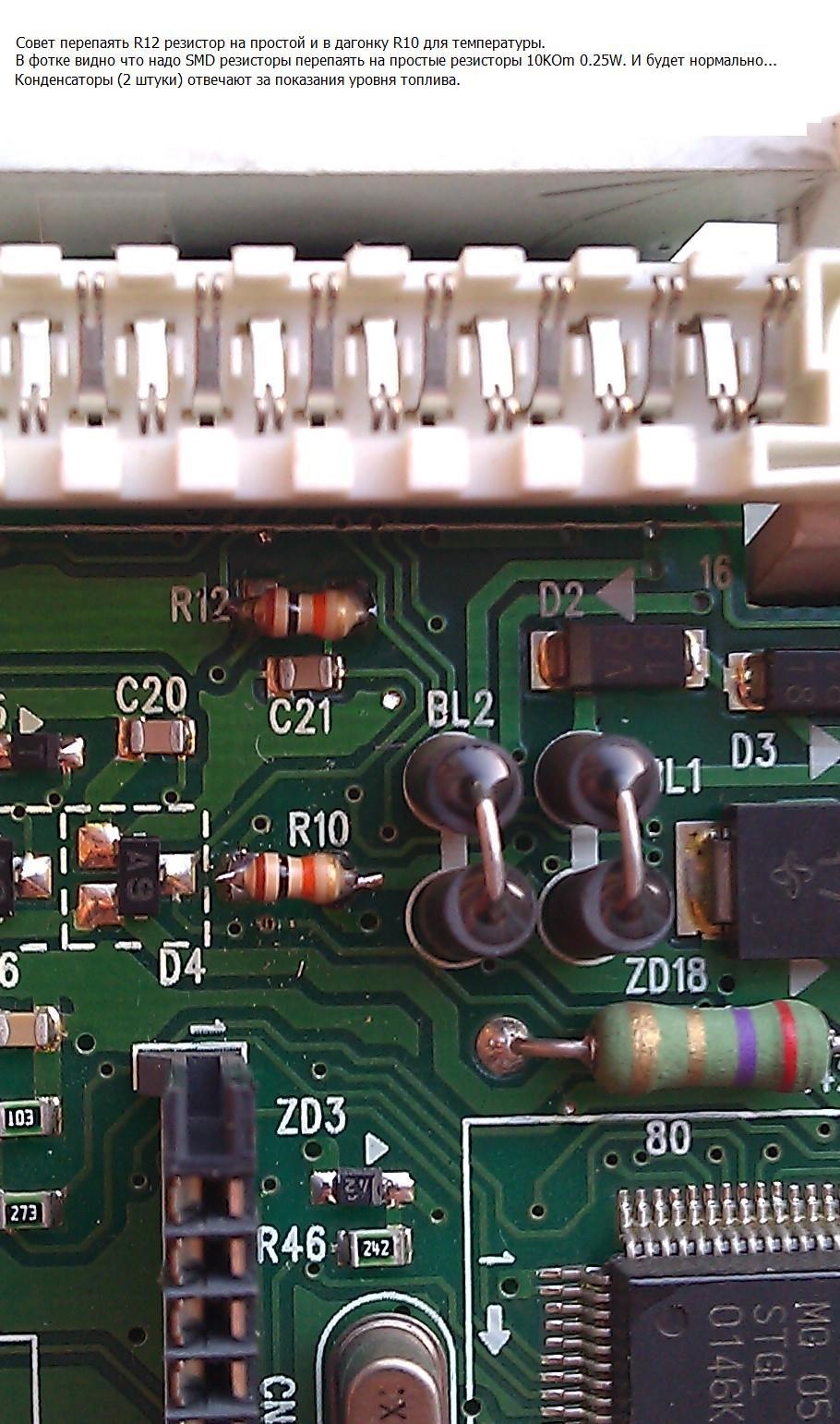 Тоже свою пропаивал, сейчас топливный врет, но как то странно. Через 5 минут езды показывает нормально. Говорят там еще надо контакты "причесать" в которые панель вставляется. Тоже может быть дело в них.