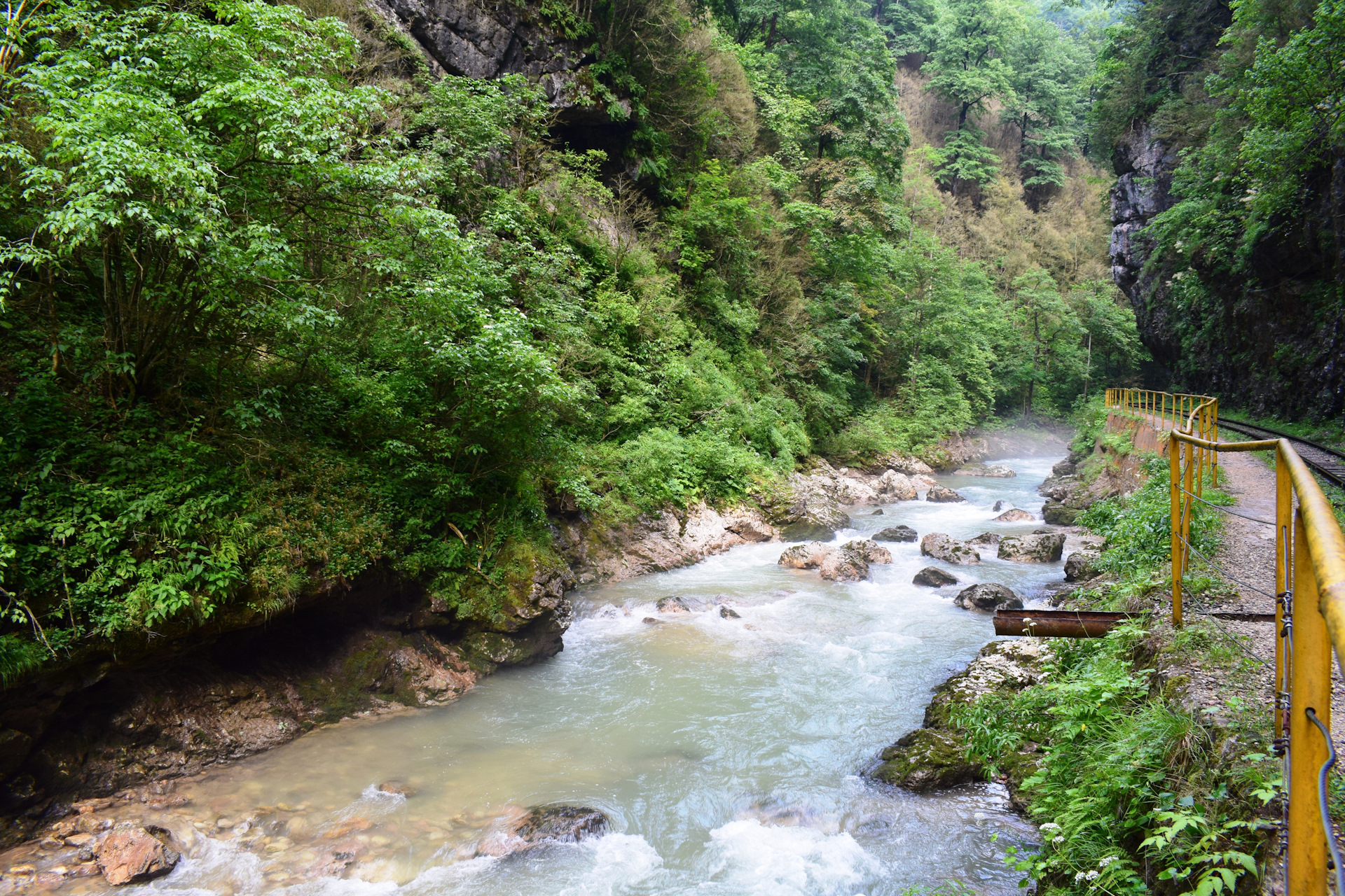 Дальше идёт путь в само ущелье вдоль железнодорожного полотна