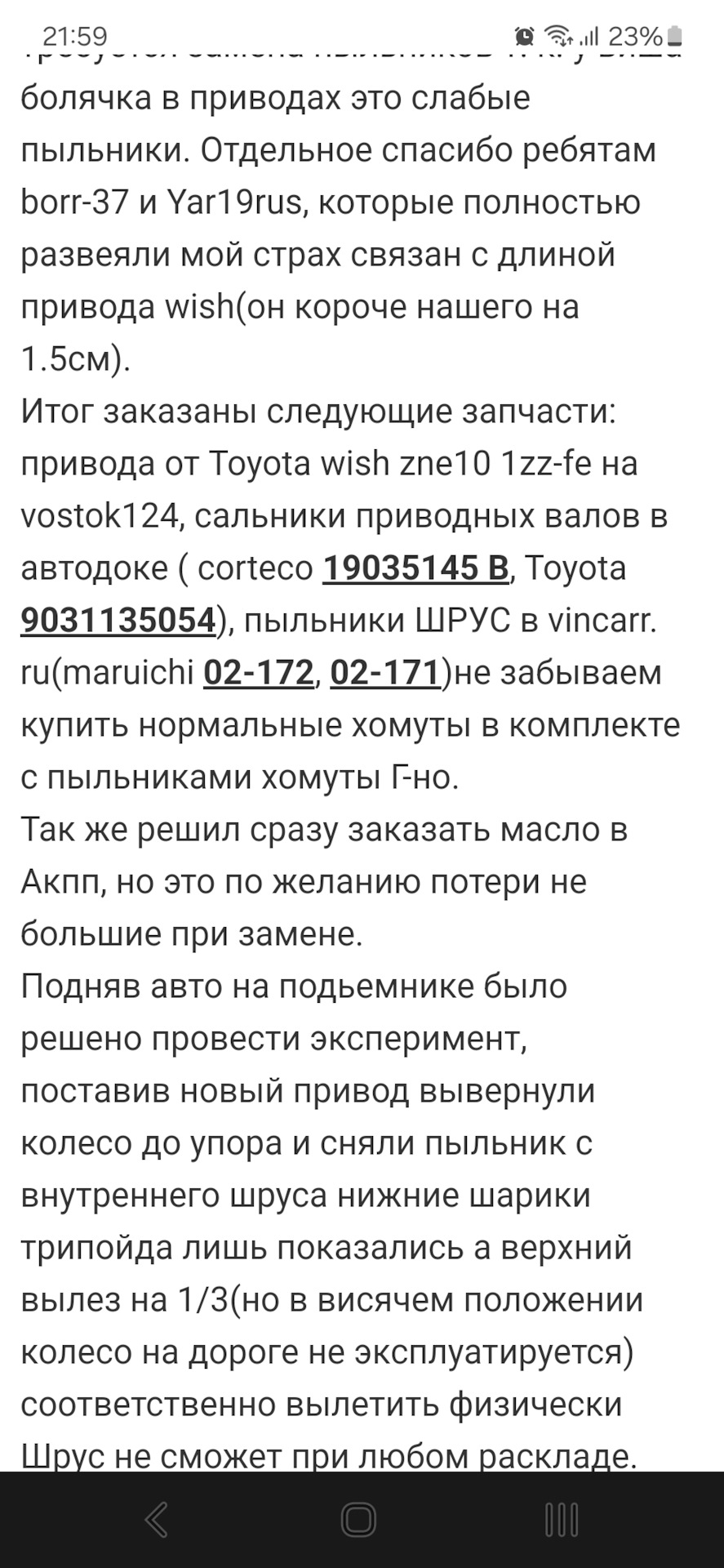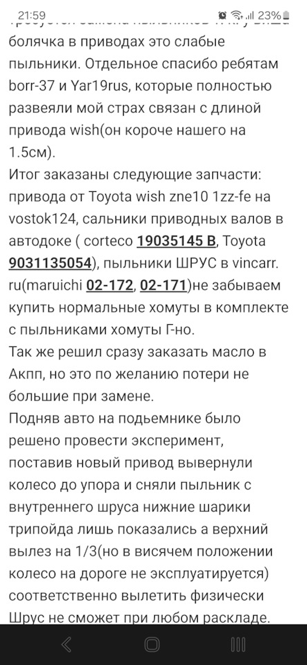 Также попутно, заменил правый привод от Wish.