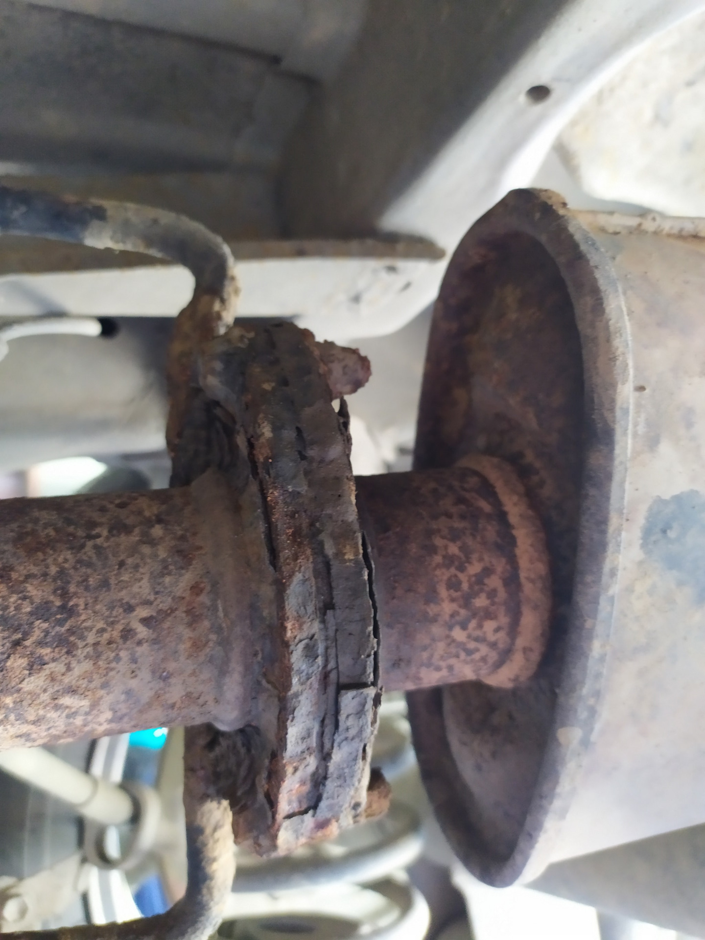 А все остальное очень печально… С заднего редуктора вместе с маслом сливается какая-то крупная стружка (похожая на резьбу с заливной пробки, но это не точно), масло с раздатки черное и пахнет гарью, при прокручивании хвоста раздатки очень чувствуется, как стучат звенья цепи. Жижа в автомате, разумеется, черная. Только в переднем редукторе ничего такого не было. Передний и задний карданы убитые, на переднем приводе кардан прям весь щелкает, на каждой крестовине. Хорошо, хоть кардан с приводными муфтами на навесное в норм состоянии. Выхлоп сгнил:
