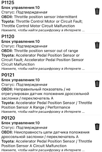 Р0120 — неисправность цепи датчика/выключателя «A» положения дроссельной заслонки/педали