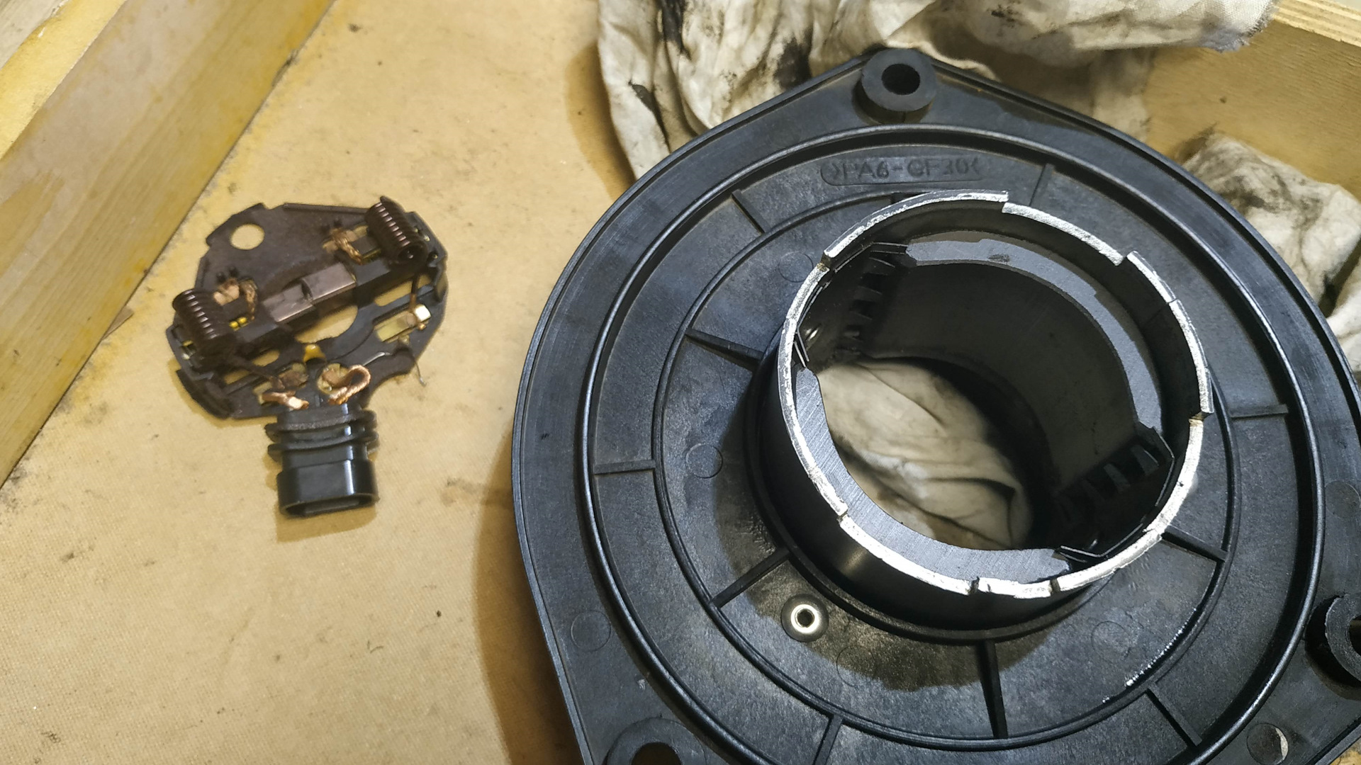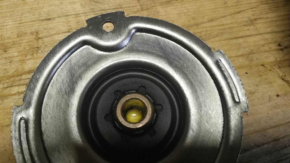 Недавно, опять, снова, опять…))) услышал скрипучий звук вращающегося моторчика печки. Очень странно, ведь. обслуживал его прошлым летом. Ок, лезем снова))). Бардачок скинуть — уже дел на 2 минуты. и моторчик открутить — тоже 2 минуты маленькой трещеткой с насадкой под крестик. Фото приложу без комментариев. Разобрал увидел, что втулки (моторчик на подшипниках скольжения), которые смазал год назад сухие, остатки масла стекли на дно нижней втулки, из фетровых пыльников масло к втулками не поступает. Выходит, что год назад ошибся с выбором смазки — сам виноват. Еще раз полностью разобрал моторчик, продул компрессором ротор, почистил щетки и коллектор. Вал и подшипник смазал какой-то синей смазкой. Возможно "высокотемпературка", в любом случае — лучше солидола. Собрал в обратном порядке — работает тихо. Ездим дальше, наблюдаем.