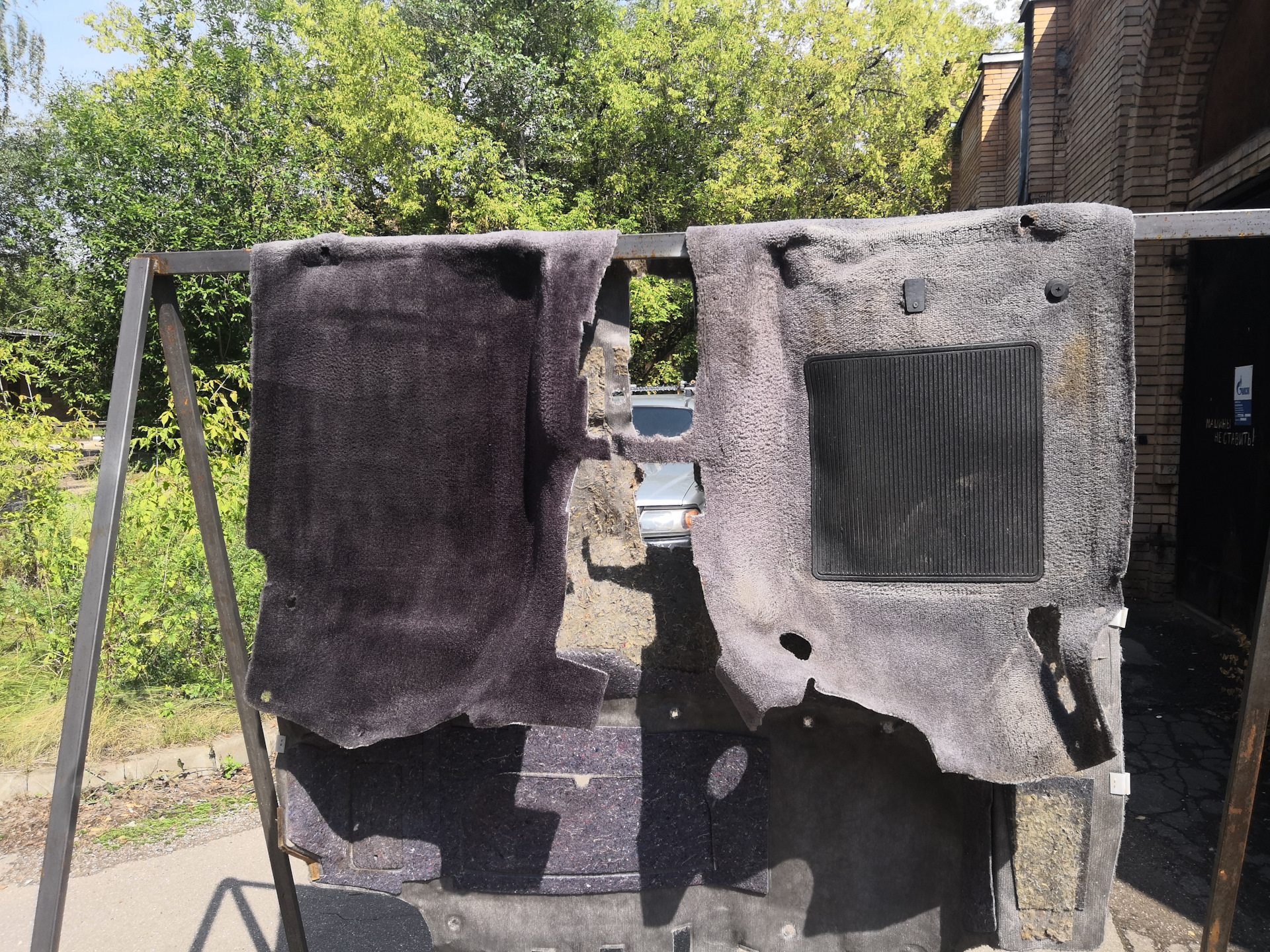 Т.к. я постепенно перешиваю / перекрашиваю салон в чёрный. Дело дошло до коврового покрытия. Штатно оно у нас серое. Когда я его снял, отдал на автомойку, чтобы они его хорошенько отмыли. Тут 2 варианта. Или я такой привередливый или мне даже на мойке не могут нормально ковёр помыть. Но как бы они не пытались набить себе цену, типа они щётками его мыли, я остался не доволен.
