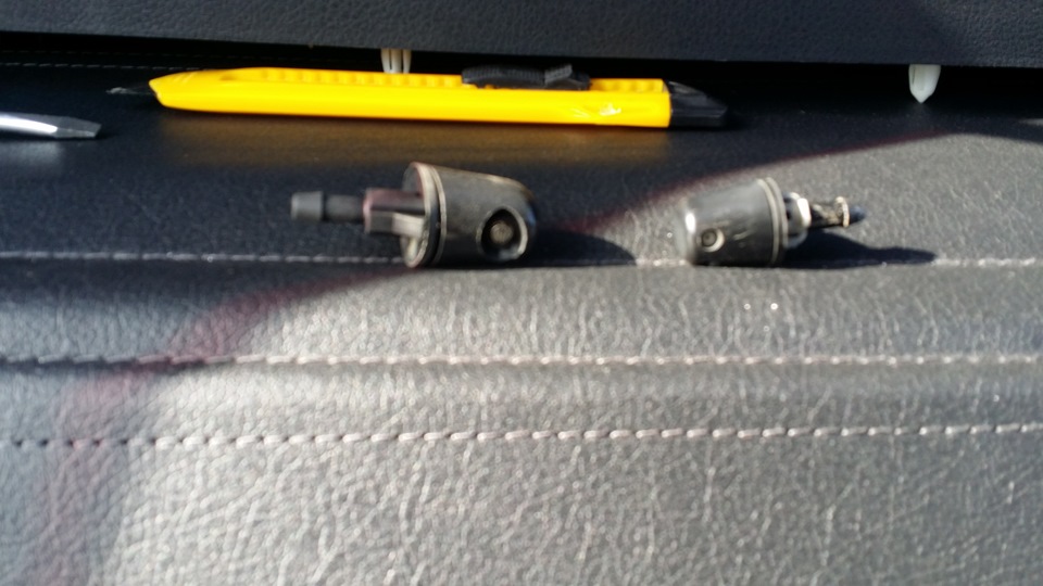 Купил сегодня в Би-БИ веерные форсунки от ваза и одну на зад не знаю от какой машины. Встали как родные регулировал канцелярским ножом. На задней форсунки ушки защёлки немого подрезал ножом не лезла.