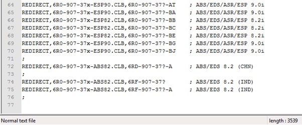 Продолжаем изучать файл 6R-03.LBL… проанализировав до конца понимаю, что в списке переадресации нет моего блока (ABS 6RU-907-379-AQ, Bosch 9.0)