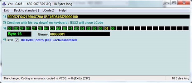 Зато есть хорошая новость для обладателей ESP — открылся пункт «Помощник при движении в гору и с горы» Byte 16 bit 0