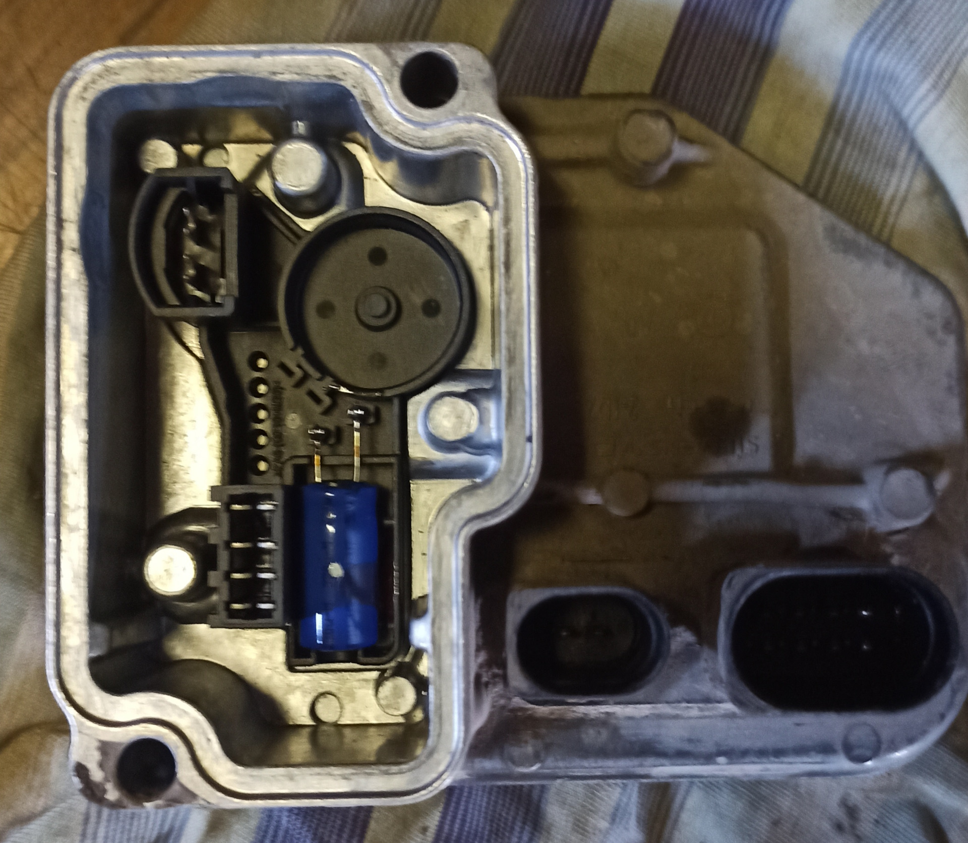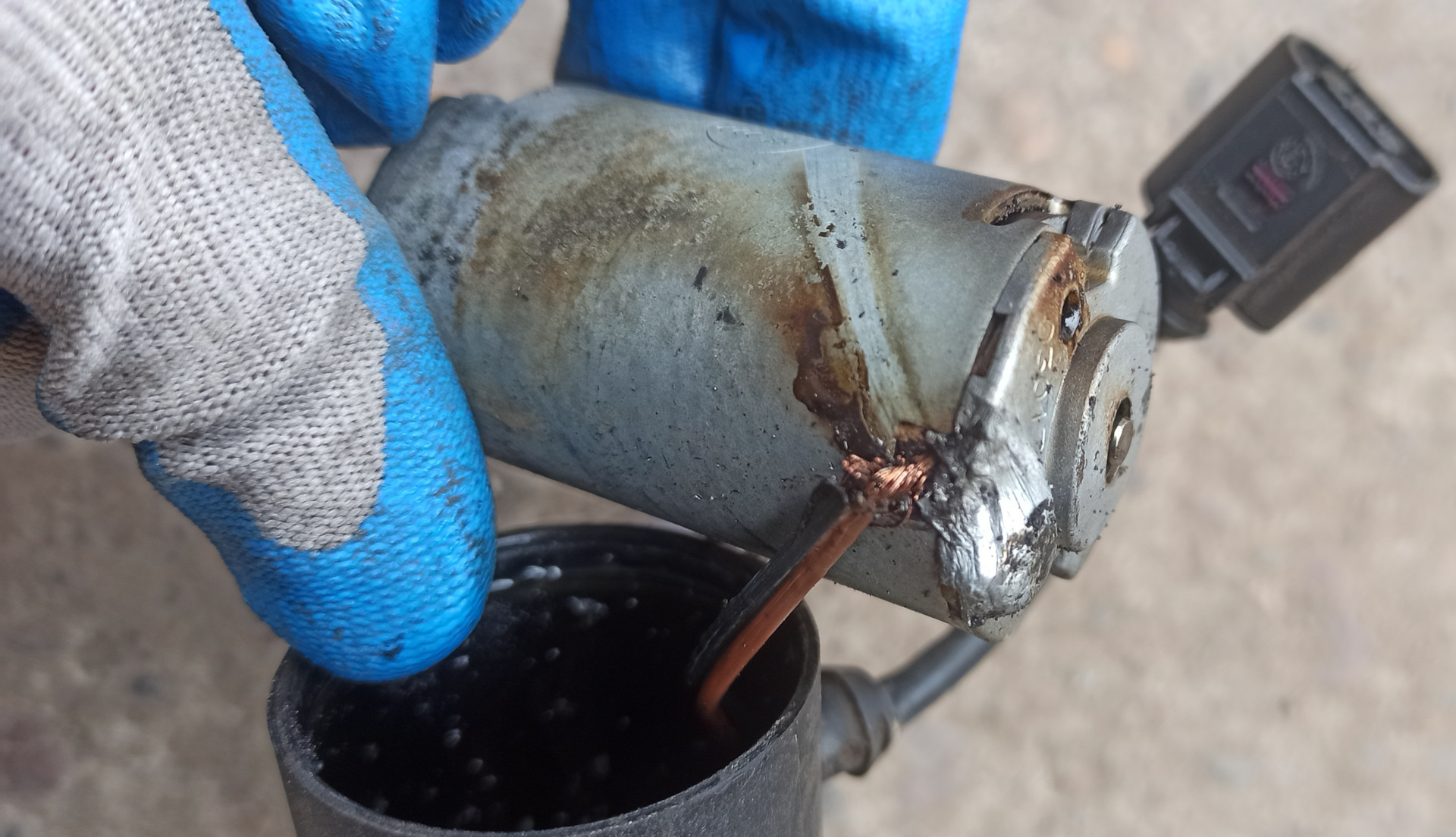 Получилось, как я предполагаю, что произошло короткое замыкание и сгорел насос "потянув" за собой и весь блок! Предохранитель при этом тоже сгорел! Как-то так! Пока собрал старый и поставил на место, как придёт донор, воткну его и буду пробовать!