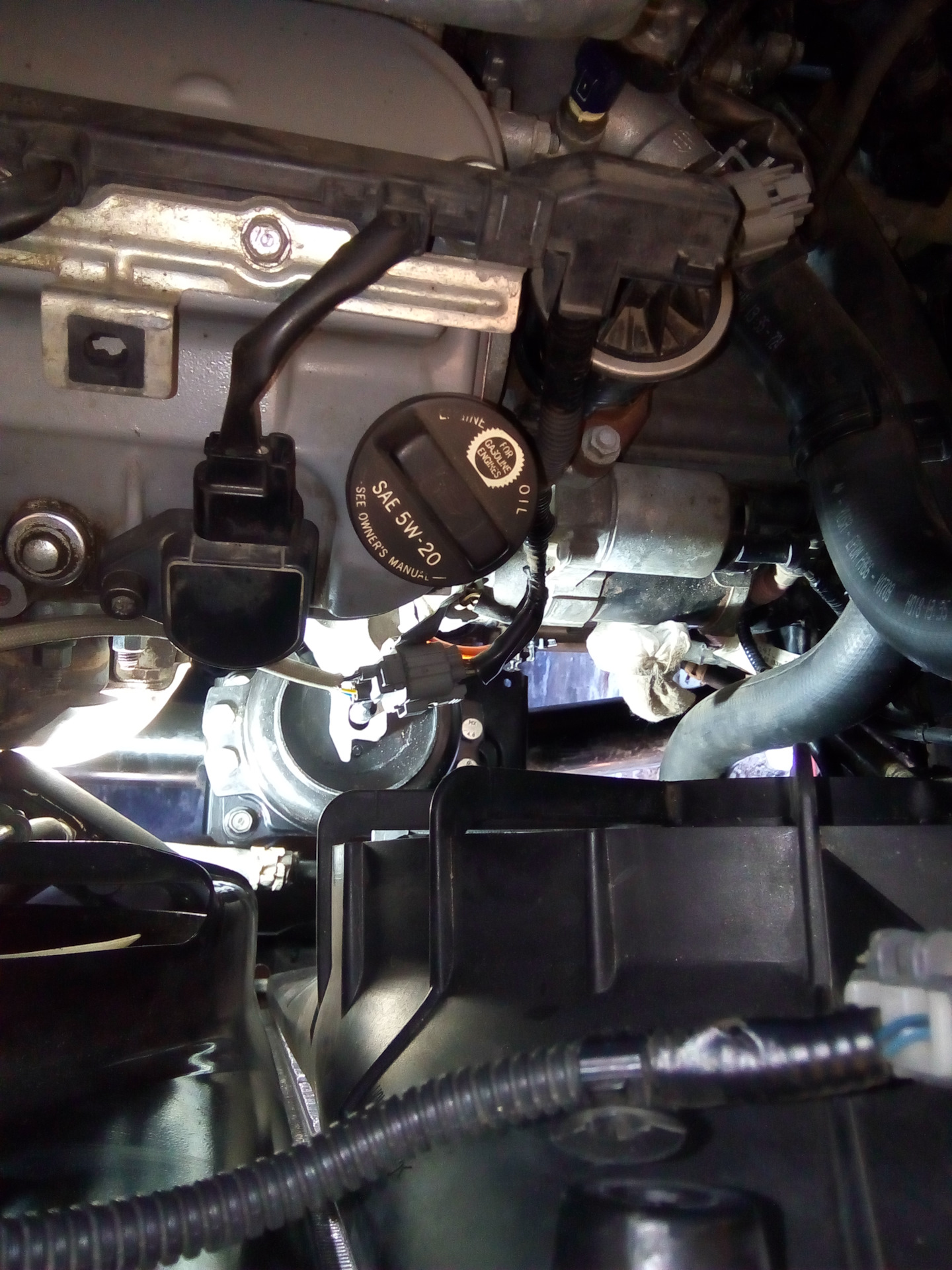 Дальше опору сдвинул к нижнему шлангу охлаждения и немного сжимая шланг просунул ее под шланг. Но как оказалось, этого еще было не достаточно.