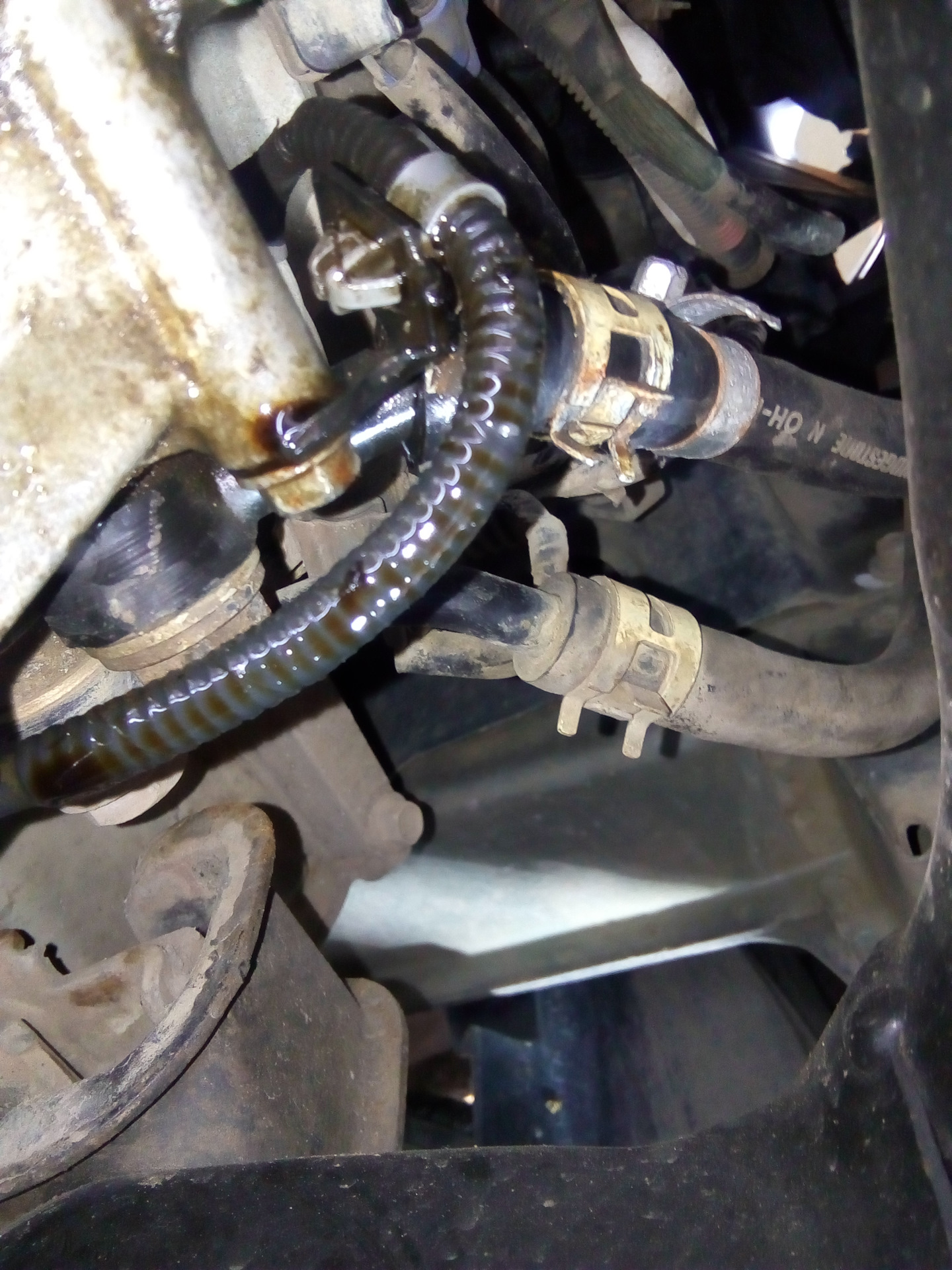 По замене масла все стандартно, откручиваем сливную пробку (затянута была очень сильно) и сливаем масло, пока масла нет меняем шланг.