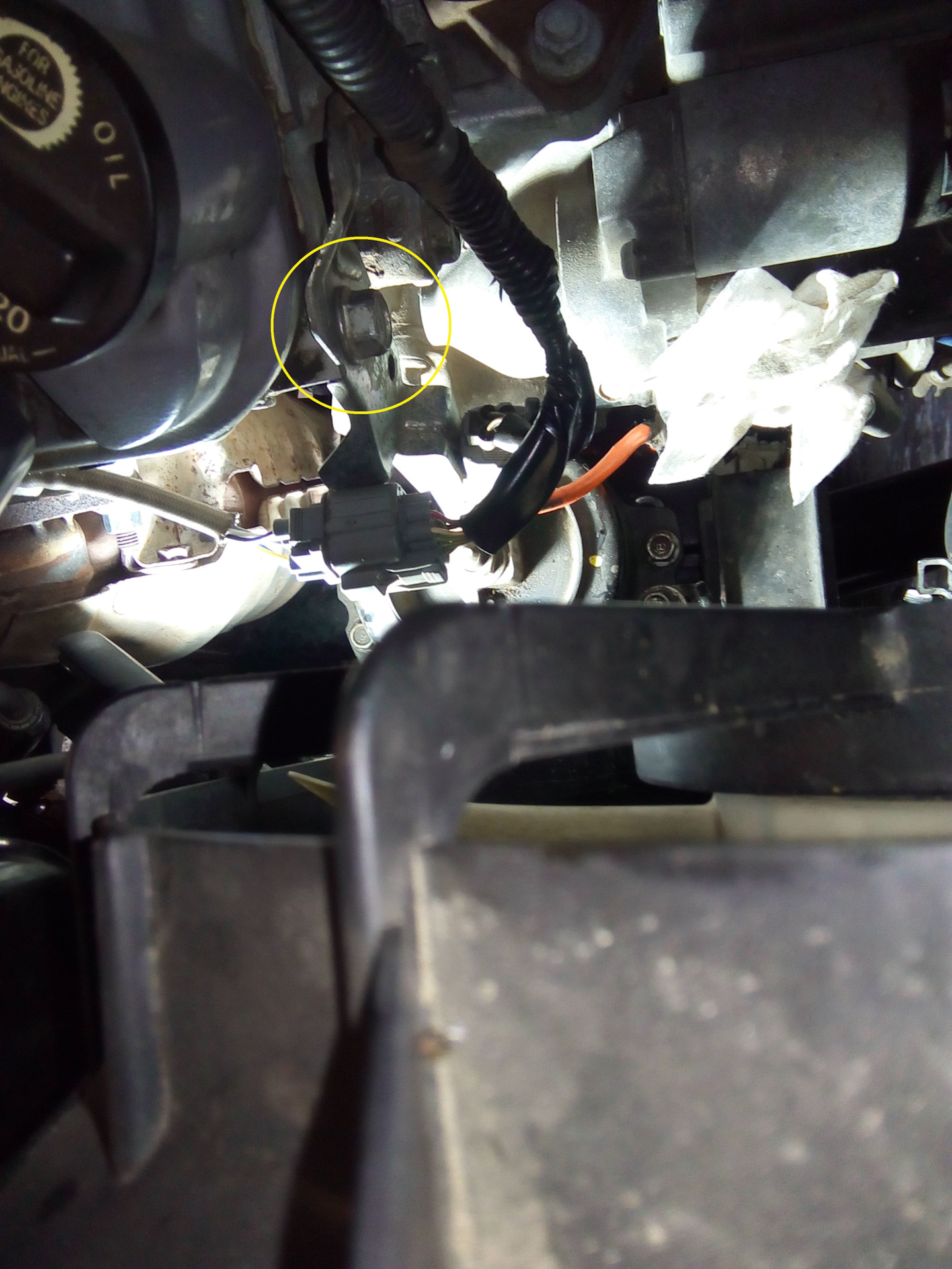Чтоб удобно было открутить центральную гайку, сначала открутил кронштейн проводки (мешался разъем лямбды – висит прям над гайкой)