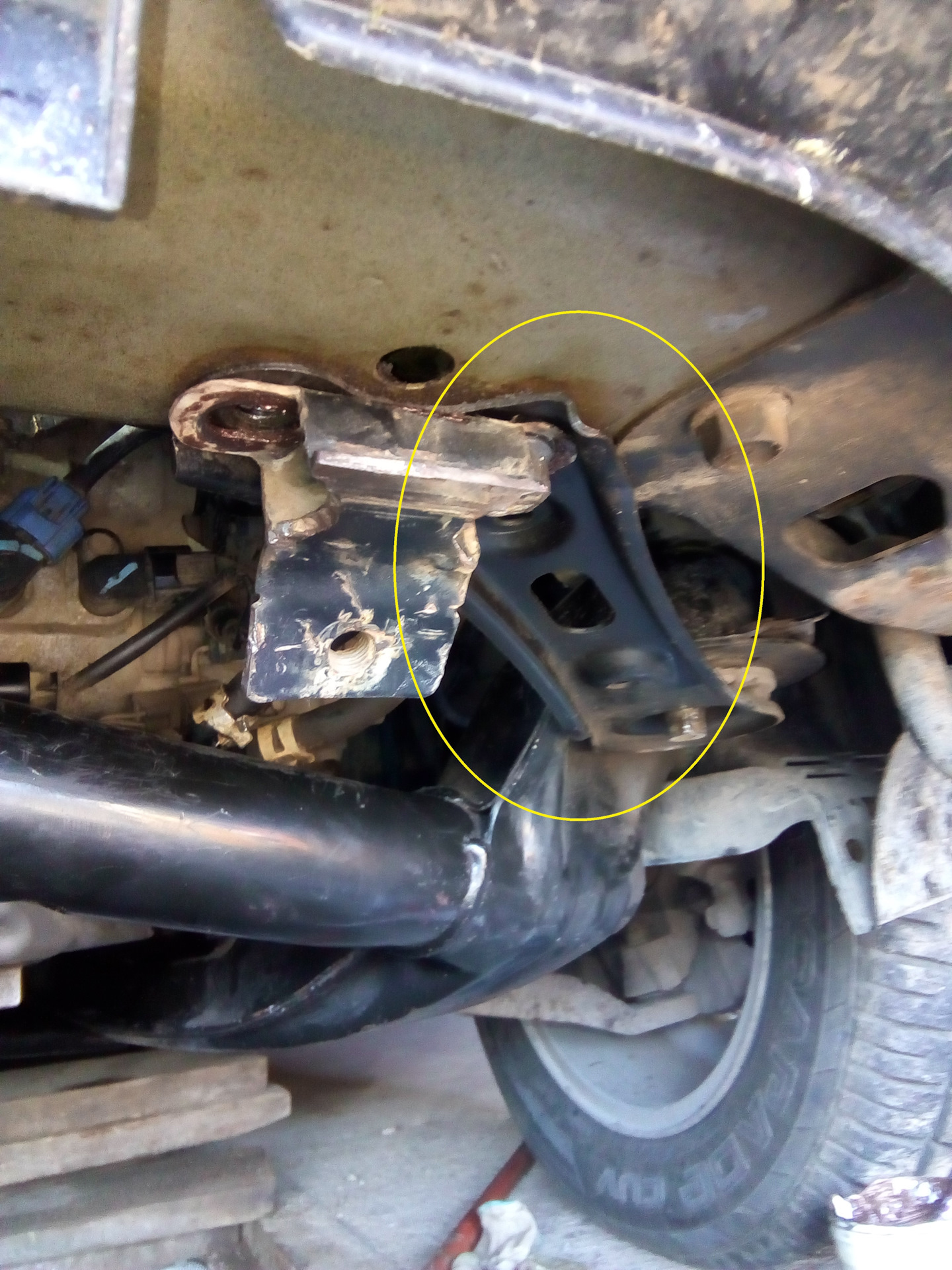 Пришлось откручивать металлическую пластину с правой стороны (если смотреть на машину спереди), через которую идет передний болт подрамника и крепление металлической защиты ДВС.