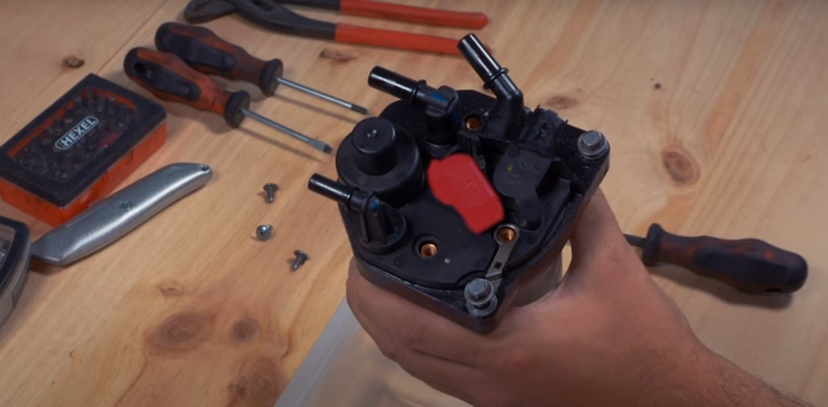 Фильтр можно смело купить всборе. Как нагреватель накроется, с него можно центральную палку переставить. Топливо сливается из фильтра на землю без этого кончика. Отсюда и подкачка.