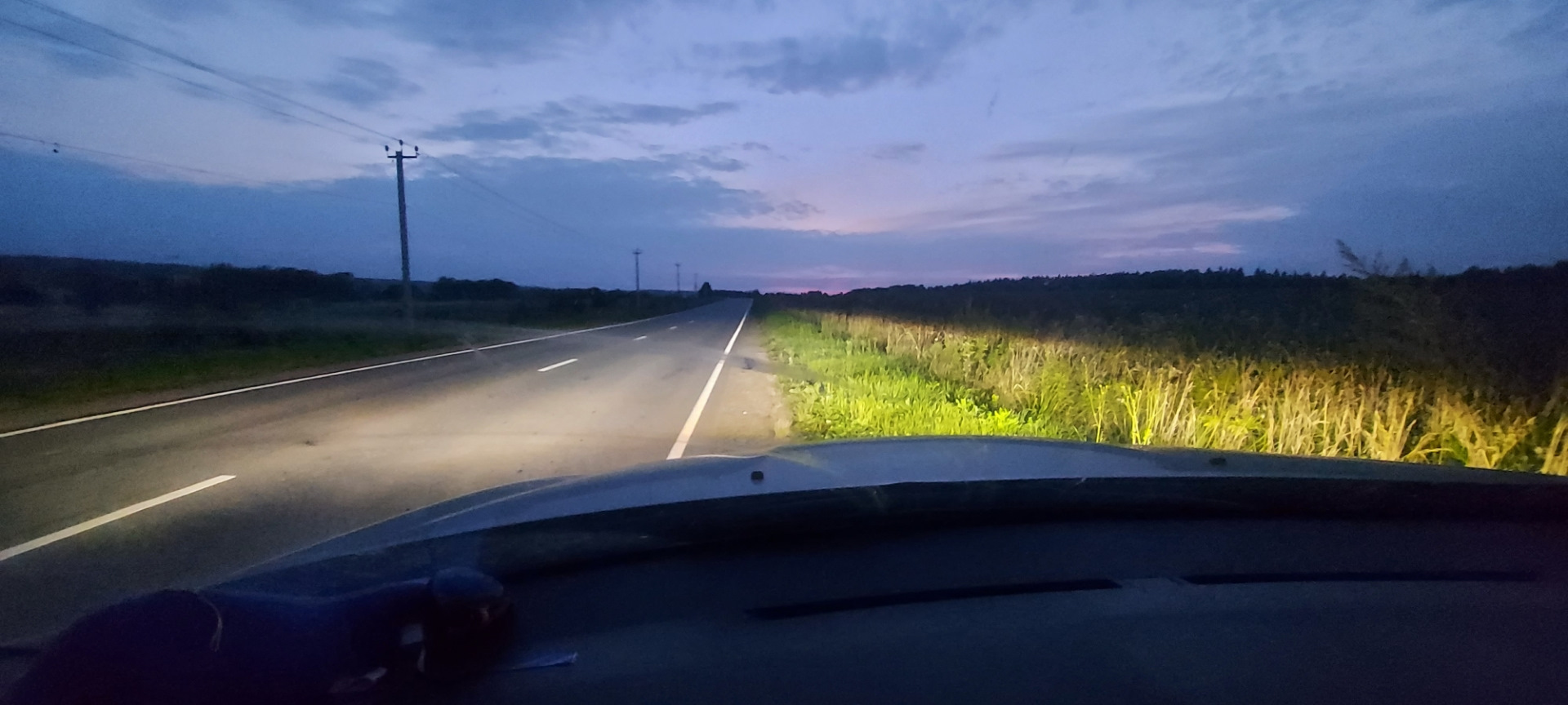 Да вообще, он светит даже шире чем led птф от outlander 3. Результат превзошёл мои ожидания, не знаю почему раньше не поставил его. Фото led птф ещё с ближним галогеном.