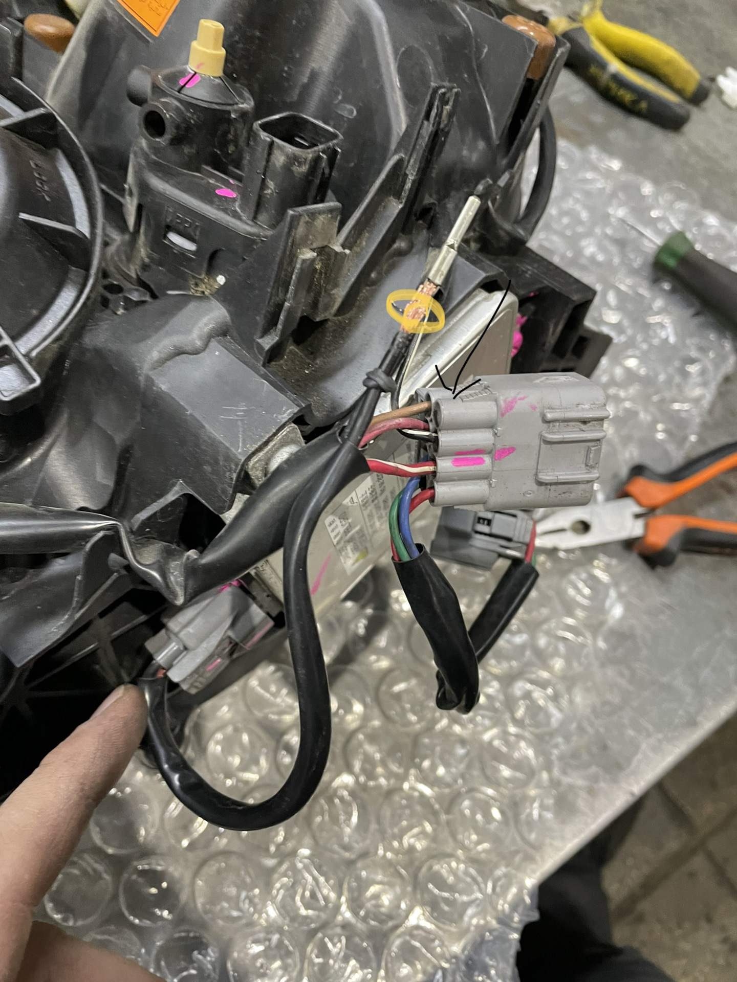 Короче после консультации с человеком который это уже делал и моих раздумий, нужно было просто кинуть этот провод на кузов с 1 и 2 фары(в моем случае была хитросплетенная система чтобы сохранить этот пин и ничего не обрезать). Из праворулной проводки был выплетен пин мама и соединен с этим пином а провод кинут на кузов.