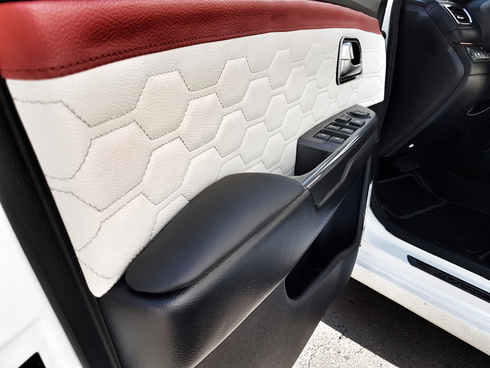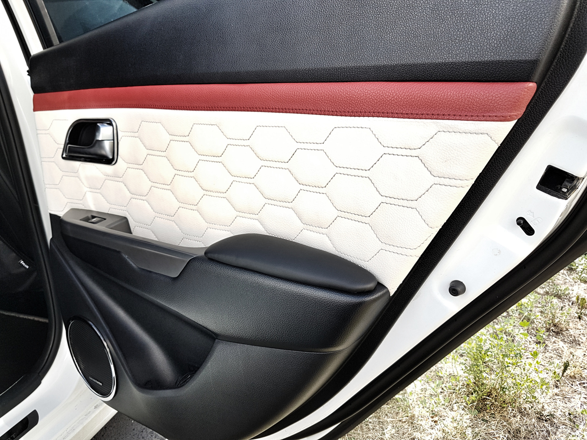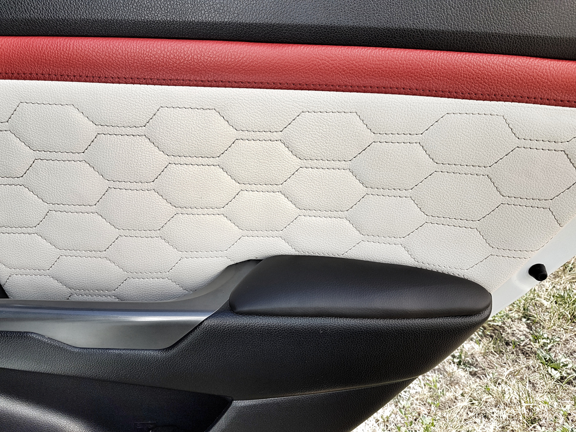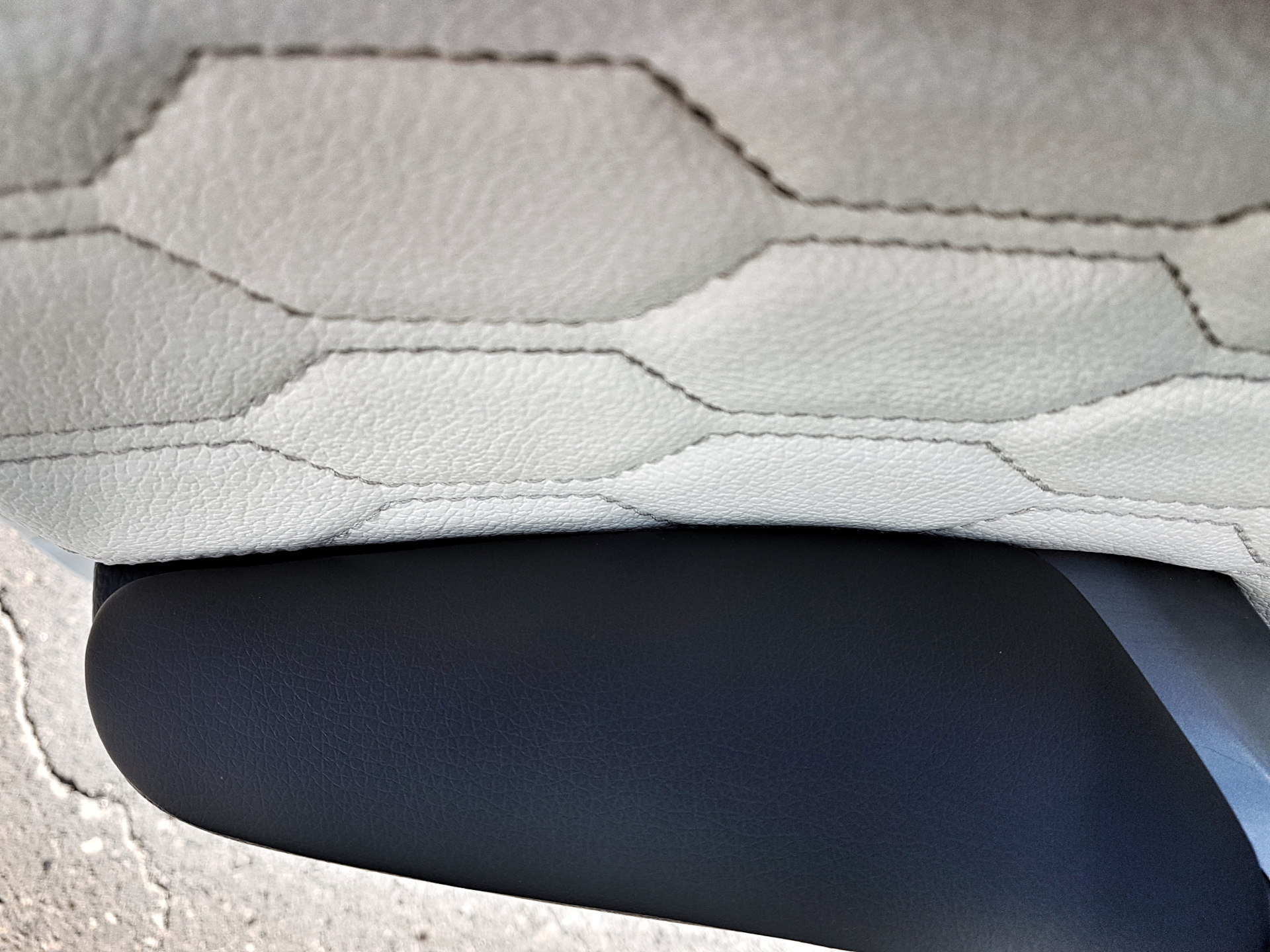 Что по внешнему виду могу сказать. Рисунок материала 100% повторяет рисунок штатной псевдокожи. Цвет классический черный, поэтому в глаза они точно не бросаются и на мой взгляд не выглядят чем-то инородным. К внешнему виду и к качеству исполнения претензий нет никаких.
