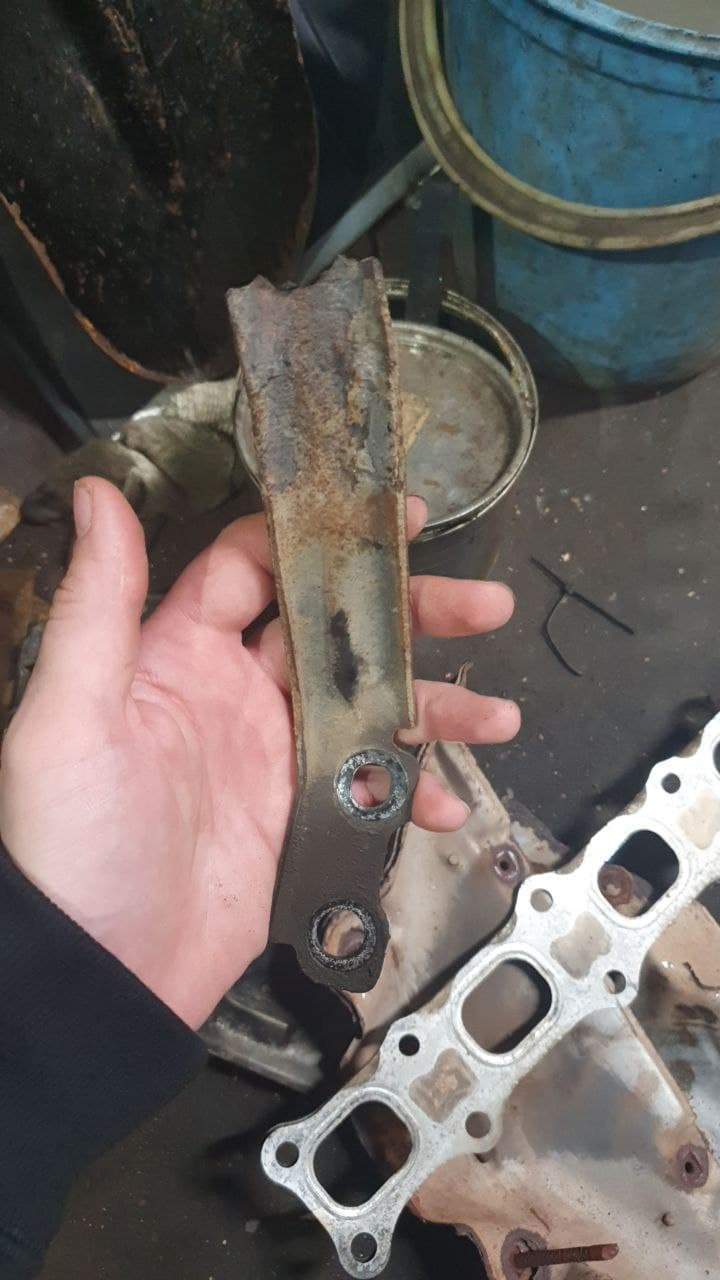 А тем временем веселье начинается и у барашка. Какие-то два болта подрамника (?) померли, за 1к рублей их как-то восстановили. Всё со слов через вторые руки, так что может быть всё вообще не так)) Дальше коллектор выражал протест максимально, прикипев всем чем можно к своему месту. С этим справились — профессионалы ж, а вот какой-то неведомый кронштейн не выдержал напора