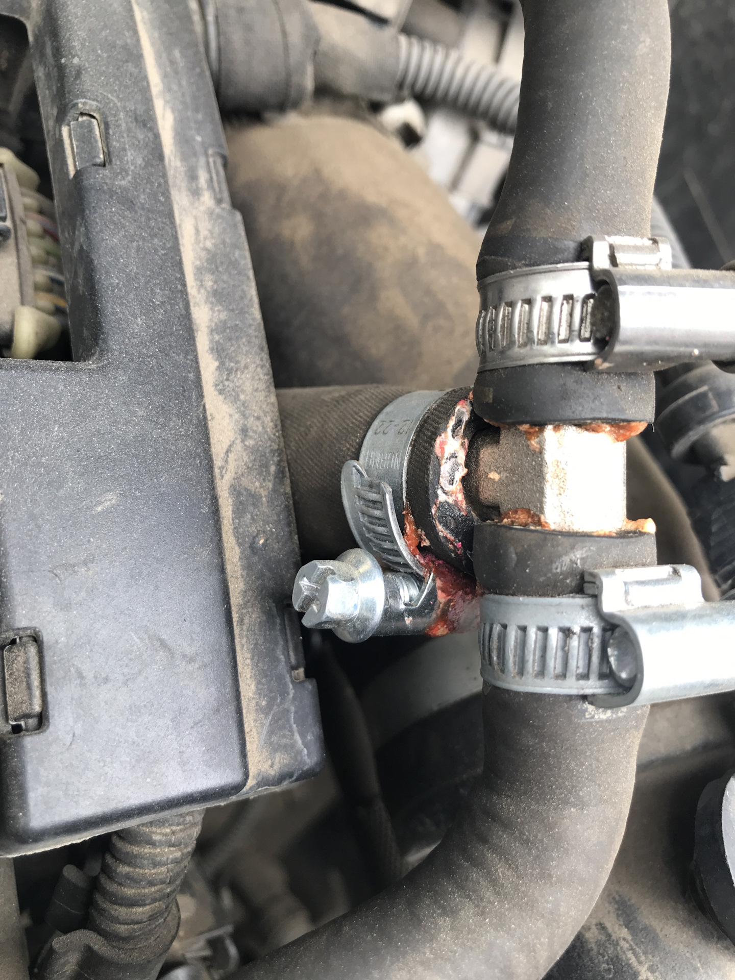 Этим летом случилась беда с датчиком температуры охлаждайки, мне его заменили, но пока меняли- развалился один из шлангов. Сервисмены наколхозили что-то, поставили тройник, стянули хомутами. А этим летом, как известно была адская жара, и в общем эта конструкция не выдерживала, и охлаждай-ка подтекала постоянно.