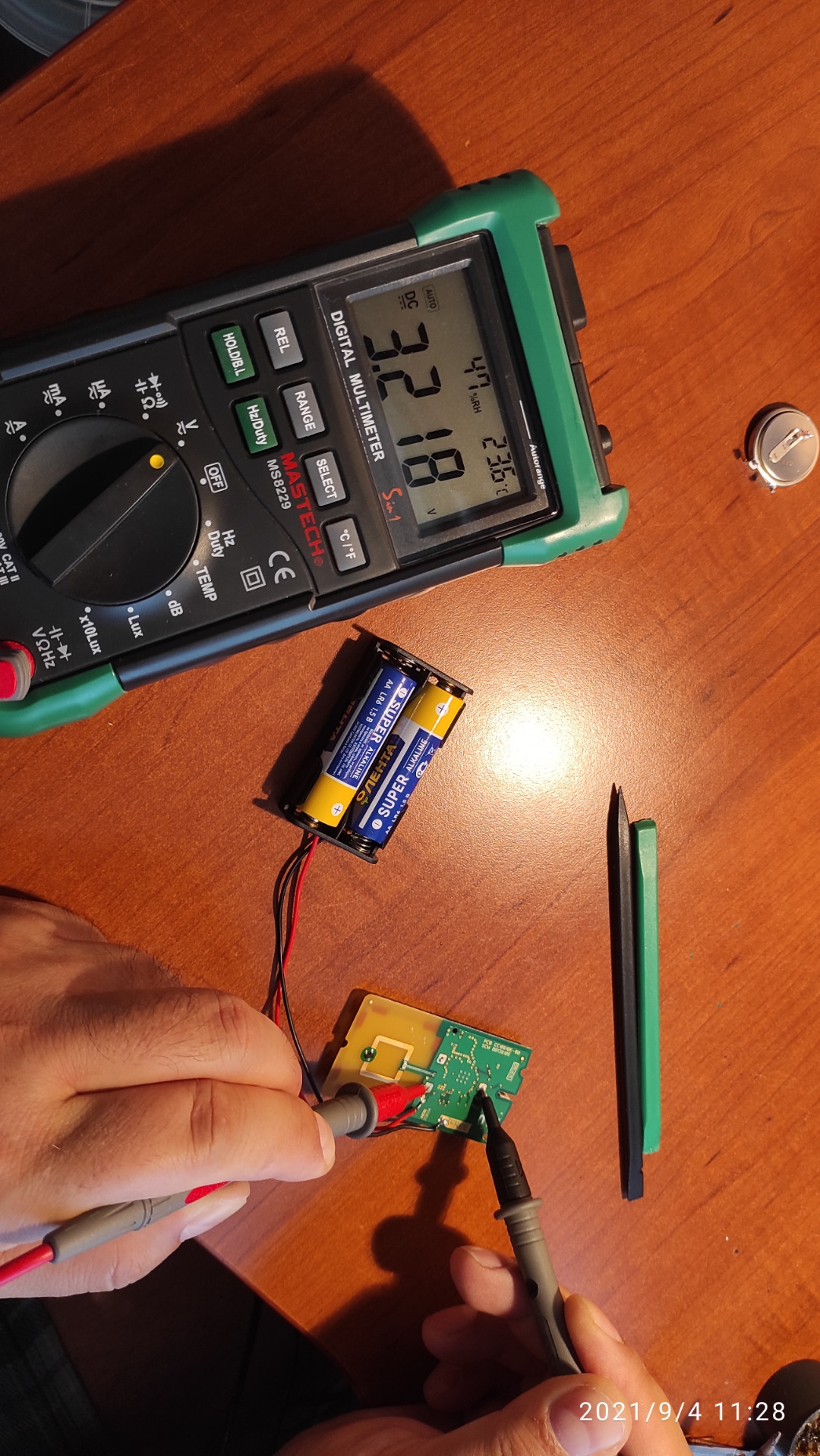 Подпаял 3.0 вольта на плату для замены элемента питания.