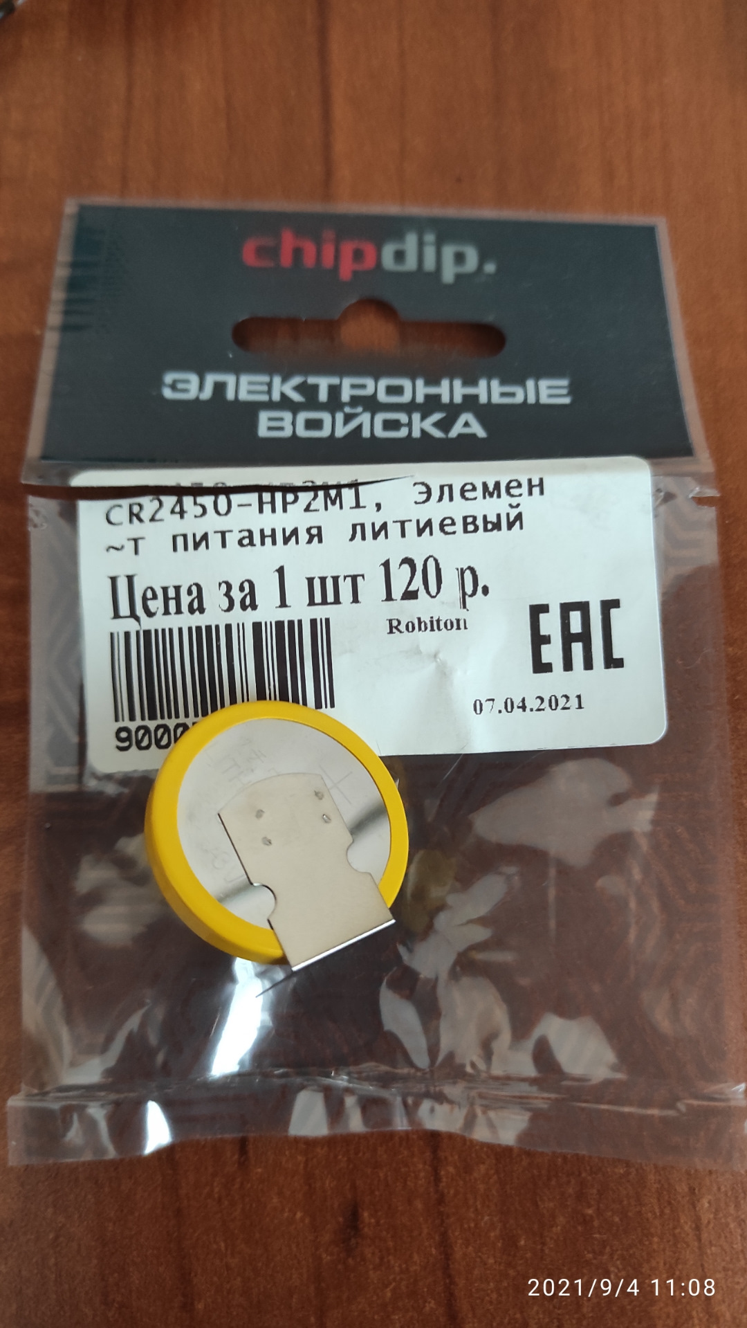 Купил в Чип Дип элемент питания CR2450-HP2M1 за 120р. Замер показал 3.3в.