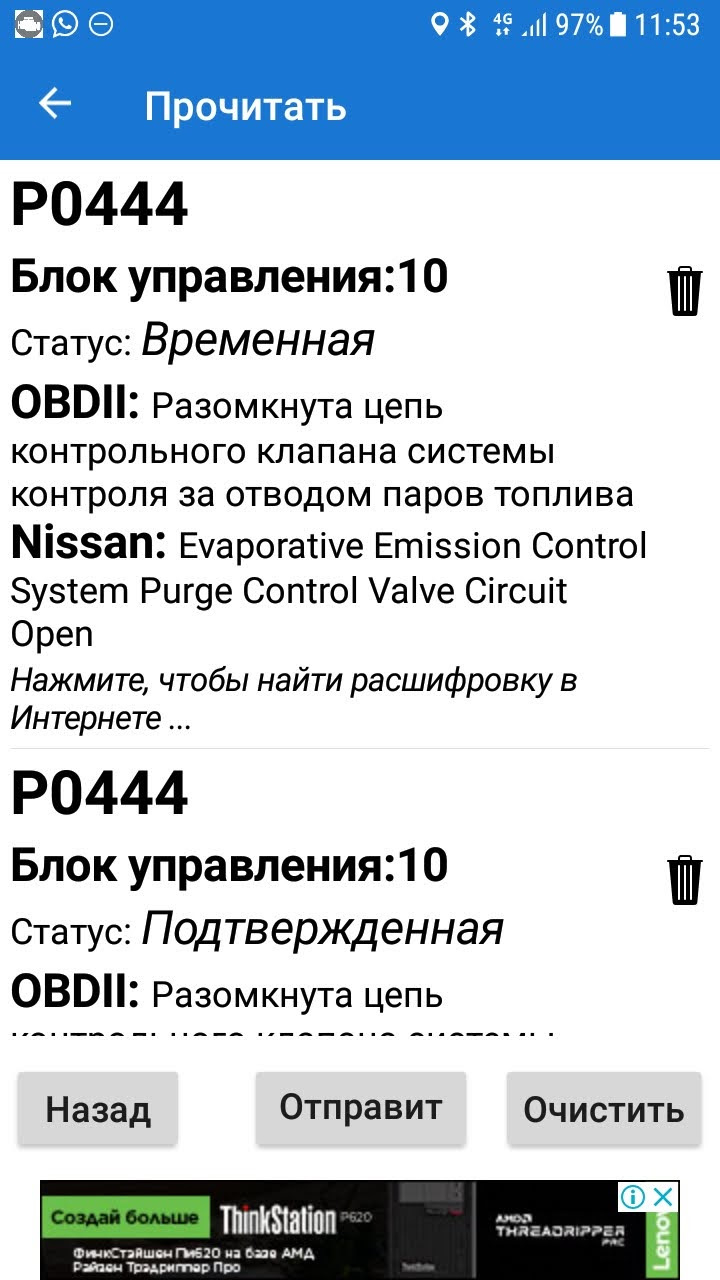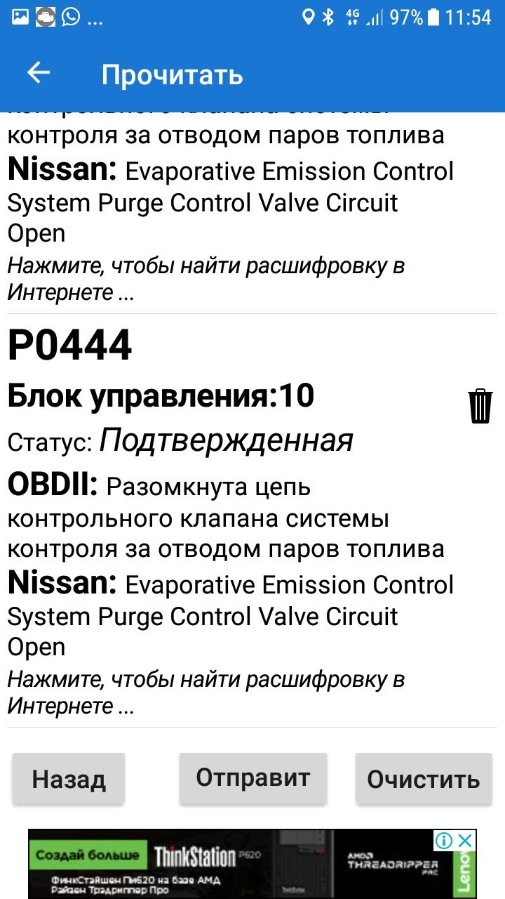 Загорелся чек, просканировали елм ошибку, он показал Р0444, открываем инет и смотрим по тииде не одной записи не нашел, попадались x-trail и Qashqai.